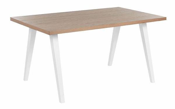 Vďaka tomuto jedinečnému kusu nábytku vytvoríte ideálne miesto na servírovanie jedla, rodinné stretnutia alebo rôzne zábavné aktivity. Stôl má mierne zošikmené drevené nohy v bielom farebnom prevedení, ktoré sú doplnené obdĺžnikovou stolovou doskou. Doska stola je vyrobená z MDF materiálu s dyhovaným povrchom vo farbe svetlého dubového dreva. Stôl možno skombinovať s rôznym typom stoličiek - od drevených až po kovové. Jeho moderný dizajn výborne doplní interiéry zariadené v škandinávskom alebo rustikálnom štýle.