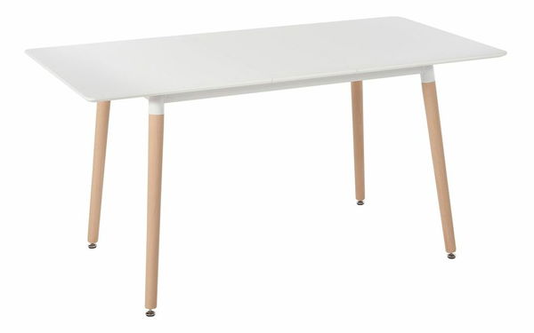 Pripravte svoj jedálenský kút pre ďalších hostí a rozhodnite sa pre funkčné riešenie. Tento rozťahovací stôl poskytuje dostatok miesta na sedenie až pre 6 osôb, vďaka čomu je ideálnym miestom na rodinné stretnutia. Odolná biela stolová doska je doplnená nohami z masívneho dreva, ktoré pekne ladia s interiérmi inšpirovanými škandinávskym dizajnom.