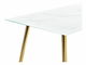 Vďaka štýlovému stolu bude konzumácia akéhokoľvek jedla ešte príjemnejšia. Tento stôl sa stane nielen pohodlným miesto na stolovanie, ale aj pútavým stredobodom miestnosti. Je vyrobený z veľmi kvalitného tvrdeného skla a nehrdzavejúcej ocele. Nádherná biela stolová doska s mramorovým vzhľadom je doplnená lesklými nohami zlatej farby. Vďaka veľkosti stola ho možno umiestniť aj do menších miestností, kde ponúkne pohodlné stolovanie až pre 4 osoby.