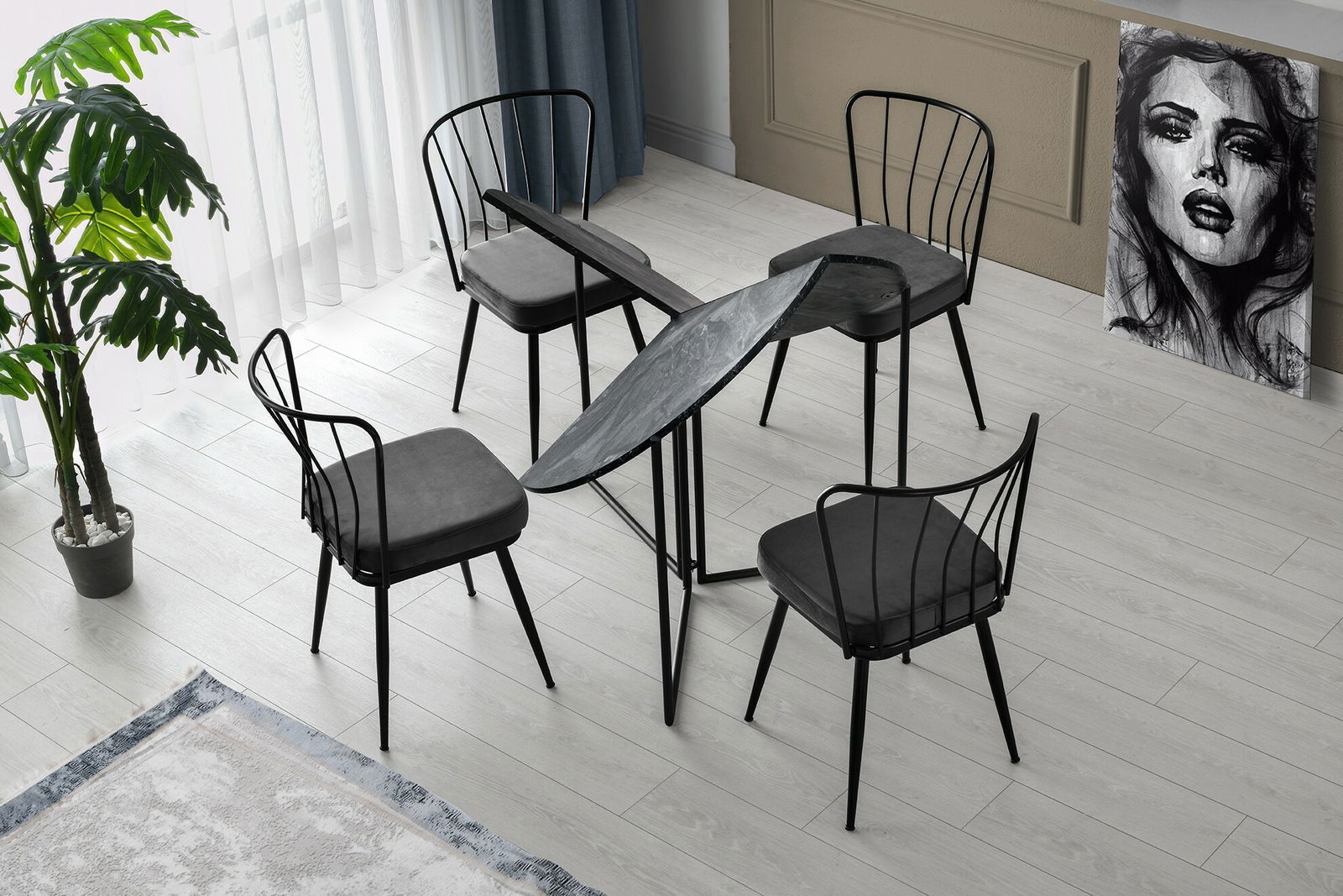Jedálenský stôl (pre 4 osoby) Yan (Antracit)