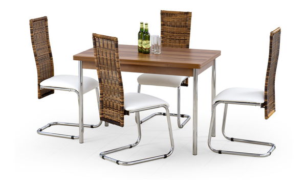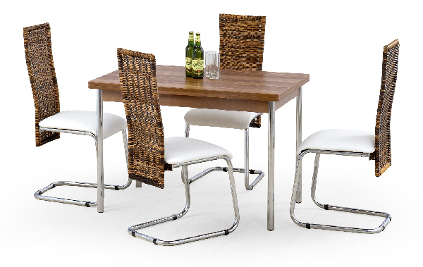 Veľmi pekný drevený stôl S1 značky Halmar je k dispozícií v rôznych farebných prevedeniach. Vďaka svojim kompaktný rozmerom je vhodný do menších priestorov Vašej kuchyne alebo jedálne. Stôl obsahuje rozkladací systém, vďaka ktorému sa za neho usadí 4 až 6 osôb. Jedálenský stôl je vyrobený laminovanej drevotriesky a nohy stola sú z chrómovanej ocele, stôl má ABS hrany.