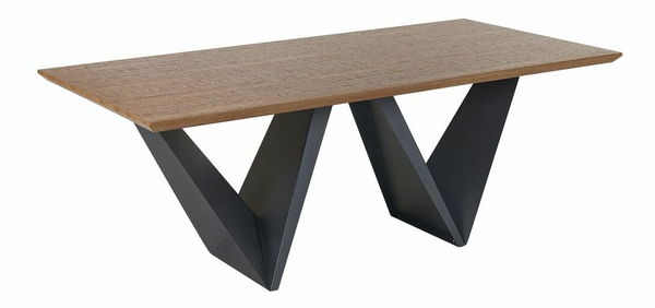 Vytvorte si doma pohodlný priestor na stolovanie s týmto jedinečným stolom v industriálnom štýle. Kombinácia dyhy vo farbe tmavého dreva, čiernej konštrukcie z ohýbaného kovu, ostrých uhlov a geometrického dizajnu vytvára dokonalý kus nábytku ideálny do akéhokoľvek interiéru. Vďaka svojmu tvaru a kvalitným materiálom je veľmi stabilný a svoj dokonalý vzhľad si zachová dlhé roky.