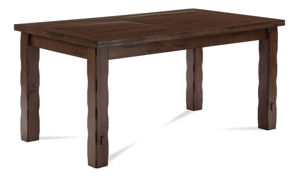 Priestranný jedálenský stôl v rustikálnom dizajne je zhotovený z masívneho dreva v kombinácii s dýhou. Tento obdĺžnikový drevený stôl má nohy z masívu (jemné ozdoby), doska stola je dýhovaná. Štýlový stôl vdýchne príjemnú atmosféru tradičnému interiéru domácnosti, chalupy reštaurácie, kaviarne a podobne. Prevedenie orech.