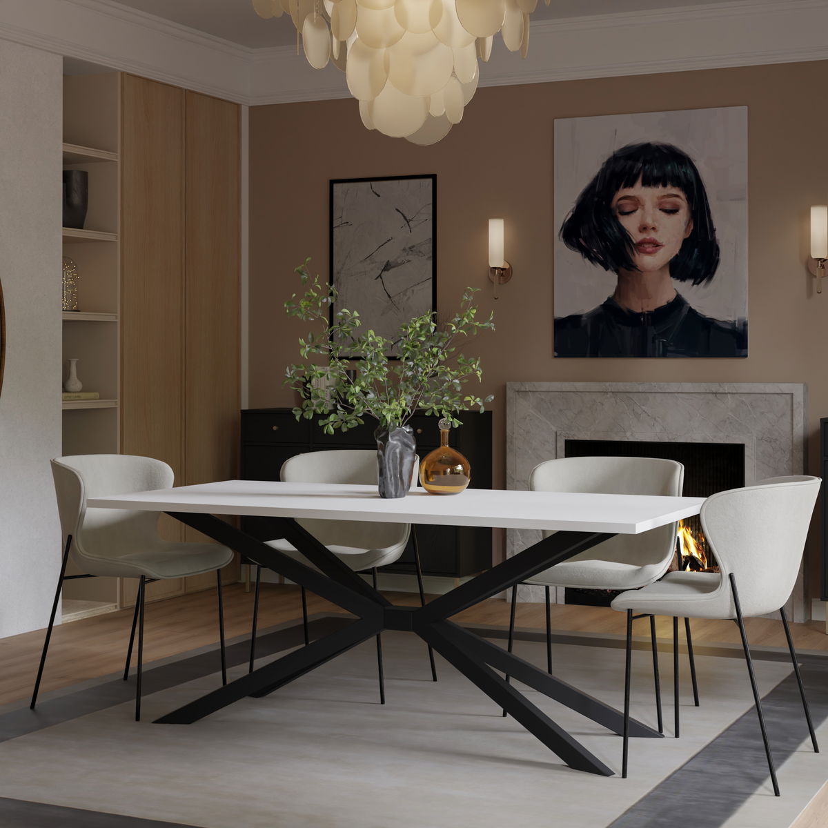 Tampos je návrhom pre tých, ktorí si cenia modernú eleganciu a solídne spracovanie. Stôl je upevnený na odolnom, matnom čiernom kovovom ráme, ktorý zaručuje nielen výnimočnú odolnosť, ale aj ucelený, expresívny tvar. Minimalistický dizajn dokonale dopĺňa súčasné trendy v interiéri – od loftov až po moderné obytné priestory. Doska stola s hrúbkou 28 mm dodáva tomuto kusu solídny charakter a zároveň zaisťuje pohodlie pri každodennom používaní. Dostupné v troch farebných variantoch – dub artisan, dub lancelot a biela – vám umožňujú dokonale zladiť stôl s vaším individuálnym štýlom interiéru. Doska stola s rozmermi 1850 x 900 mm ponúka funkčný priestor, zatiaľ čo výška stola 750 mm zaisťuje ergonomický komfort pri práci aj stretnutiach. Tampos nie je len stôl – je to vedomá voľba, ktorá dodáva interiéru charakter a stáva sa jeho ústredným bodom.
