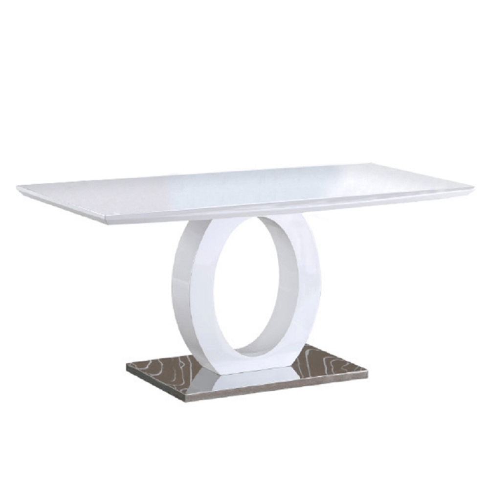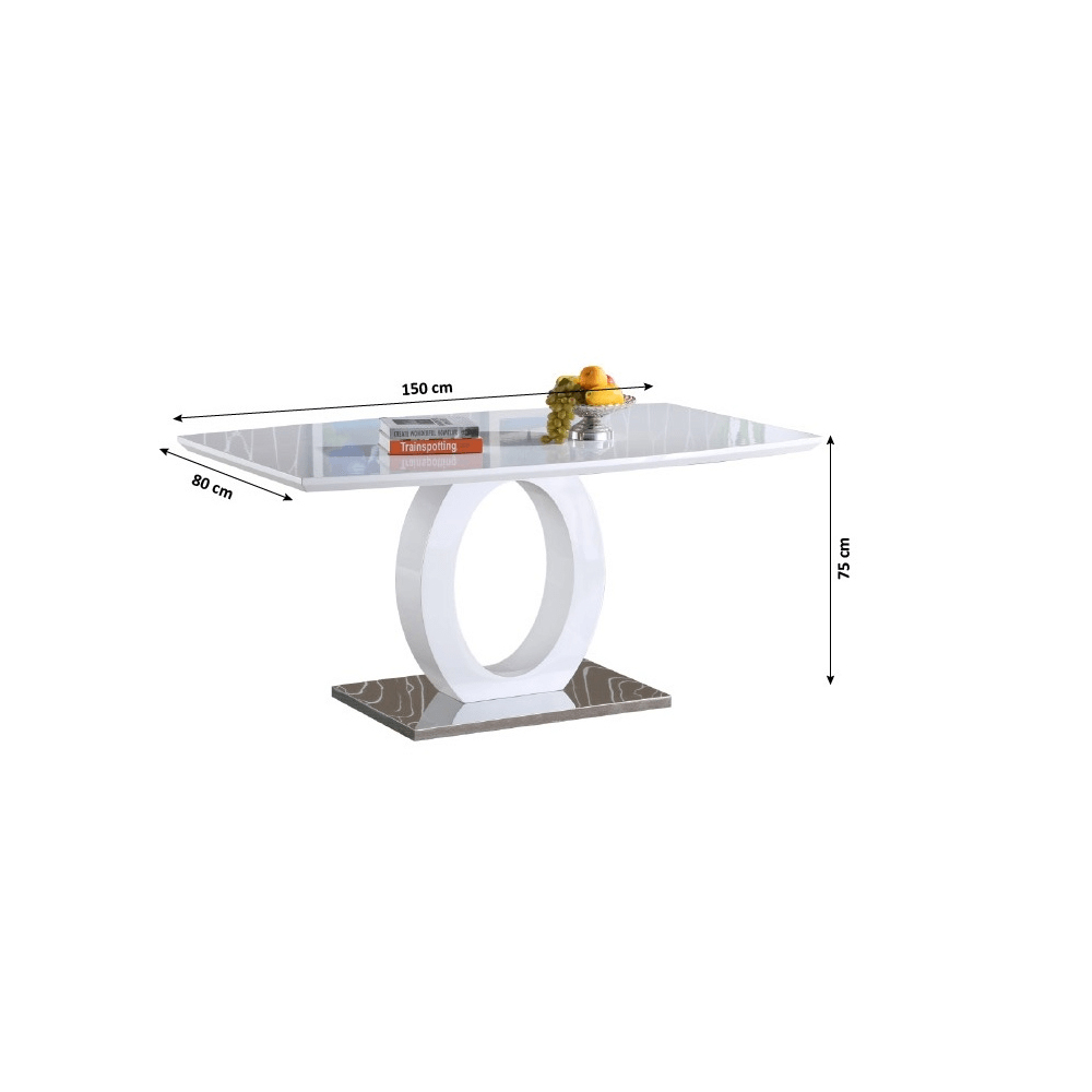 Jedálenský stôl Zarai je ideálnym doplnkom pre vašu jedáleň. Vyrobený z kvalitného materiálu MDF a nehrdzavejúcej ocele, tento stôl je mimoriadne pevný a odolný. Biela farba s extra vysokým leskom pridáva elegantný a moderný vzhľad do každej miestnosti. Jeho rozmery 150x80x75 cm poskytujú dostatok priestoru pre 6 osôb. Vrchná časť stola má hrúbku 40 mm a spodná časť 30 mm, čo zabezpečuje jeho stabilitu a odolnosť. Stôl je dodávaný v demonte, čo umožňuje jednoduchú montáž. S Jedálnym stolom Zarai si užijete pohodlné a elegantné jedlo so svojimi blízkymi.