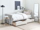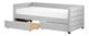 Vďaka horizontálnemu panelovému prešívaniu a zamatovo hladkému mäkkému čalúneniu pôsobí táto posteľ elegantným dojmom, ktorý skrášli akýkoľvek priestor. Okrem estetického šarmu ponúka táto posteľ aj úložný priestor v podobe dvoch priestranných zásuviek. Tento kúsok, ktorý je kombináciou postele a pohovky, skvele vynikne v akejkoľvek detskej alebo hosťovskej izbe.