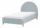 Táto čalúnená posteľ v svetlomodrej farbe, ktorá je kombináciou estetického dizajnu a funkčnosti, bude dokonalým doplnkom do detskej izby alebo menšej spálne. Je vyrobená z kvalitného zamatu a odolného MDF materiálu a vydrží roky aj bez každodennej údržby. Polkruhové čelo, ktoré dizajnu postele dodáva nádych retro štýlu, rozhodne upúta vašu pozornosť.
