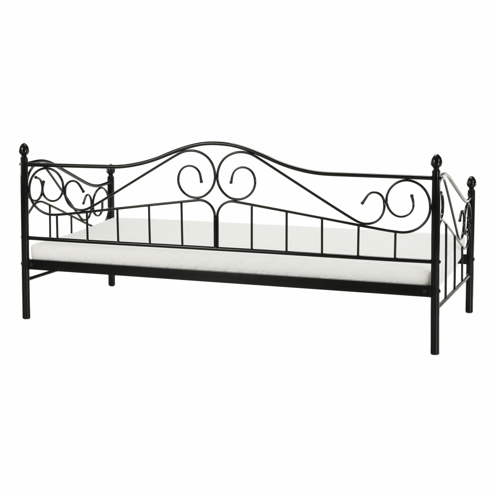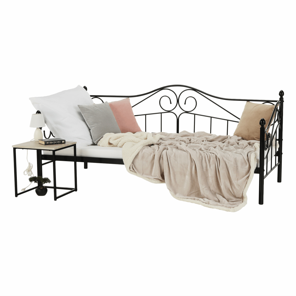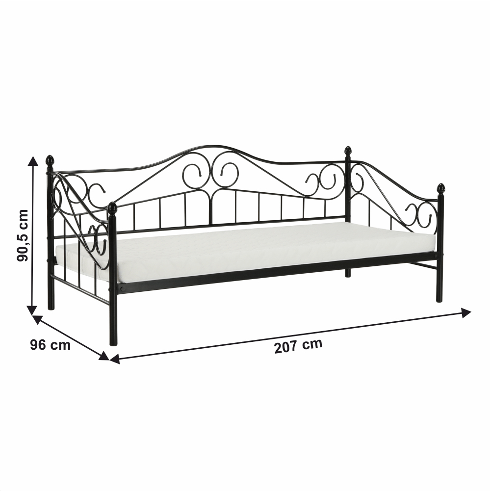 Jednolôžková posteľ 90 cm Danina (čierna) s roštom je skvelým doplnkom do každej spálne. S výškou 90,5 cm, šírkou 207 cm a hĺbkou 96 cm poskytuje dostatok miesta na pohodlný spánok. Táto posteľ je vyrobená z kovu, čo zaručuje jej pevnosť a odolnosť. Čierna farba dodáva posteľi moderný vzhľad, ktorý sa hodí do každého interiéru. S roštom je táto posteľ kompletná, takže nemusíte hľadať žiadne ďalšie doplnky. Jednolôžková posteľ 90 cm Danina (čierna) s roštom je skvelou voľbou pre všetkých, ktorí hľadajú pohodlný a kvalitný spánok.
