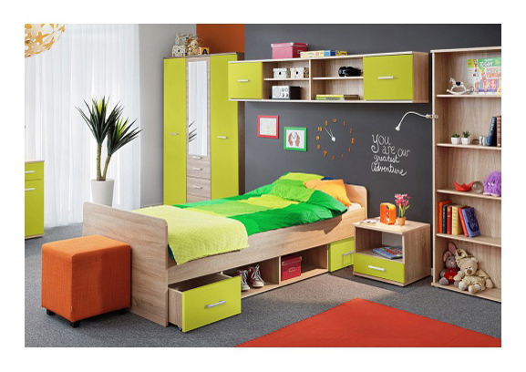 Detstvo je krásne obdobie života plné hier, zábavy ale aj spoznávania sveta okolo nás. Modelová rada nábytku Emio pekne kombinuje veselé žiarivé farby, ktoré majú deti rady a zároveň kladie dôraz na praktické využitie nábytku. Jednotlivé prvky tejto modelovej rady sú príťažlivé pre deti a zároveň im poskytnú dostatok úložného priestoru pre hračky, knižky a oblečenie. Nábytok je dodávaný v prevedení dub sonoma v kombinácii s bielou, oranžovou alebo zelenou.