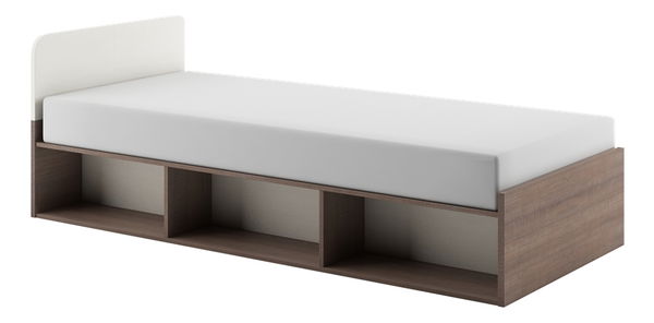 Samostatná jednolôžková posteľ s čelom pri hlave s úložným priestorom na strane. Matrac má rozmery 90cm šírku, 200cm dĺžku a 18cm výšku.