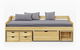 Jednolôžková posteľ 90 cm Marais (prírodná) je viacúčelová posteľ vhodná do detskej či študentskej izby. S výškou 69 cm, šírkou 204.8 cm a hĺbkou 96.5 cm ponúka dostatok úložného priestoru. Zahrňuje štyri malé šuplíky, jeden väčší šuplík na kolieskach a jeden úložný box na kolieskach, ktorý v prípade potreby môže slúžiť ako nočný stolík. Vyrobili sme ju z kvalitného lakovaného masívu, čo dodáva miestnosti prírodný vzhľad a príjemnú vôňu. Posteľ je dodávaná s roštom, avšak matrac si môžete objednať z našej ponuky.