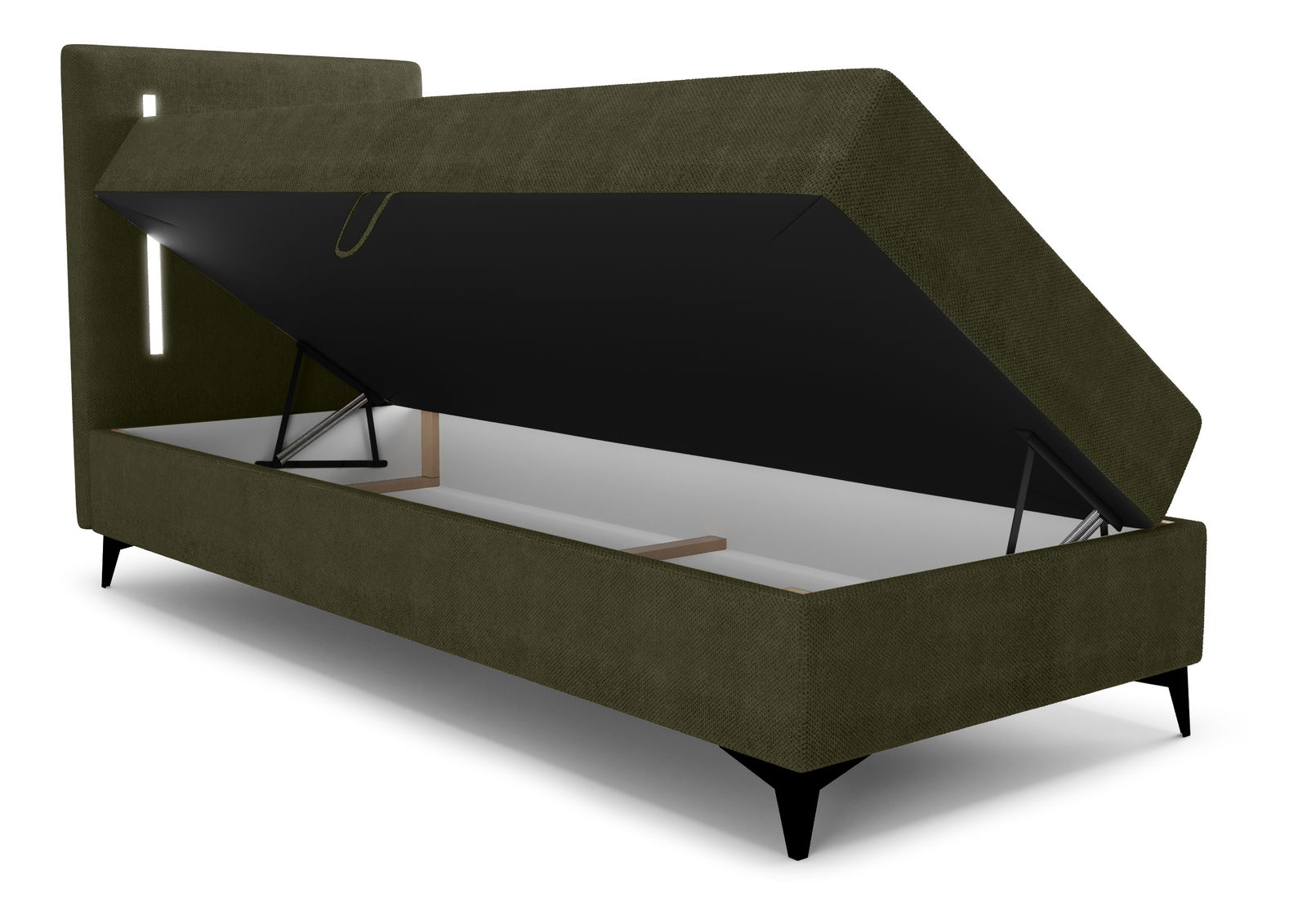 Jednolôžková posteľ 90 cm Ortega Bonell (olivová zelená) (s roštom, s úl. priestorom) (s LED osvetlením)