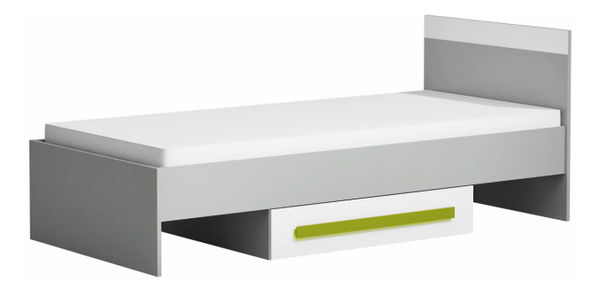 Jednolôžková posteľ Piere má moderný a príťažlivý dizajn. Vhodná je do detských a študentských izieb. Zároveň má v spodnej časti úložný priestor. Nosnosť postele je 80 kg. Posteľ je vo farebnom prevedení sivej a bielej farby. Úchyt úložného priestoru je v zelenej farbe.