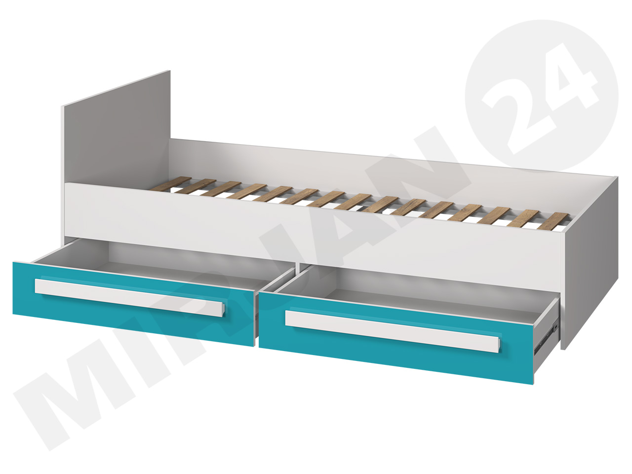 Jednolôžková posteľ s úložným priestorom, ktorá sa hodí do detskej či študentskej izby. V zásuvkách sú vodiace lišty ložiskové. V cene postele je zahrnnutý rošt.