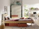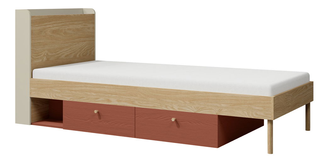 - Jednolôžková posteľ 90x200 cm Yoda 13 (svetlobéžová + dub olejovaný + korálová) (P)