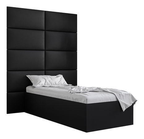 Jednolôžková posteľ s čalúneným čelom 90 cm Brittany 1 (čierna matná + čierna) (s roštom)