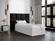 Jednolôžková posteľ BELLA s čalúneným čelom 90 cm Brittany 4 v biela matná a čierna farbe je elegancká a jemne dizajnovaná posteľ vhodná pre každú spálňu. Posteľ má pevnú konštrukciu z laminovanej dosky a odolný rošt z borovicového dreva. Príslušné farebné panely dodajú posteli nevšedný vzhľad. Posteľ má plochu na spanie 90x200 cm, neobsahuje úložný priestor, no má laminovanú dosku 16 mm, borovicový rošt a lemovanie ukončené odolnou PVC dyhou. Materiál panelov je 8 mm hrubá doska + 3 cm hrubá pena T18 + tkanina Manila 18. Tkanina Manila je trvácna, odolná a nehorľavá s vlastnosťou nevyblednutia a nežmolkuje sa počas používania. Posteľ je dodávaná bez matraca, no môžete si ho vybrať a priobjednať z nášho internetového obchodu.