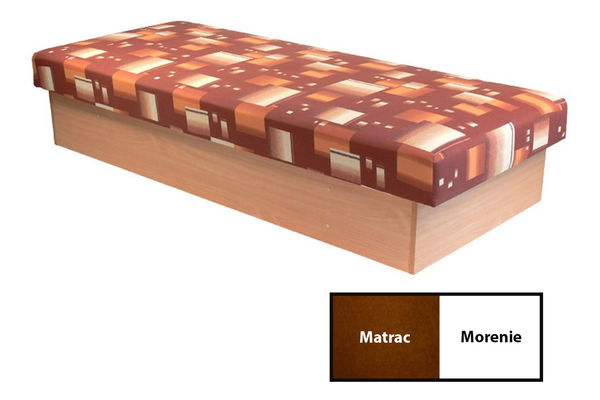Poločalúnená jednolôžková posteľ jednoduchého dizajnu, ktorá sa hodí do detskej, či študentskej izby, ale aj do menšieho bytu. Posteľ disponuje aj praktickým úložným priestorom, ktorý sa vyklápa zboku. Úložný priestor je vo vnútri rozdelenými priečkami. Zmestí sa Vám do neho posteľná bielizeň, či rôzne drobnosti, pre ktoré nemáte doma úložný priestor. Posteľ je dodávaná s pružinovým matracom. Na výber máte rôzne poťahové látky, čiže si ju viete zladiť aj s inými prvkami v miestnosti.