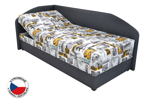 Jednolôžková posteľ (váľanda) 90 cm Blanár Turi (vzor Tettau 174-03 + tmavosivá) (s roštom a matracom) (L)