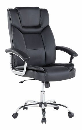 Komfortná kancelárska stolička je vynikajúcim doplnkom do vašej kancelárie či domácej pracovne. Hrubé čalúnené sedadlo, operadlo s funkciou naklápania a čalúnenie z umelej kože vytvárajú ideálne kreslo na dlhé hodiny strávené pri práci. Pevná oceľová podnož poskytuje spoľahlivú stabilitu a zároveň umožňuje nastavenie výšky sedadla, 360-stupňové otáčanie a ľahký pohyb na nylonových kolieskach.