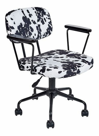 Táto otočná stolička v retro štýle s modernými prvkami sa stane príjemným doplnkom vašej domácej kancelárie. Vďaka lesklému čalúneniu z umelej kože vyzerá elegantne a je nielen praktická a funkčná, ale aj štýlová. Opierky rúk z preglejky dokonale ladia s čiernou kovovou konštrukciou. Vstavaný plynový zdvih umožňuje nastavenie výšky sedadla, vďaka čomu sa stane dokonale vyhovovať vašim potrebám.