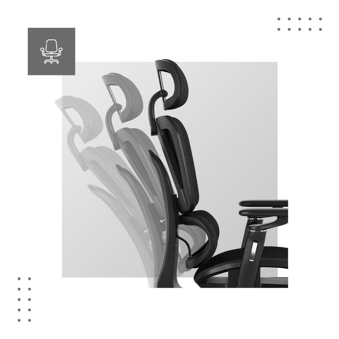 nastavenie uhla sklonu operadla s aretáciou, nastaviteľná výška sedadla, ergonomické, nastavenie podrúčok a opierky hlavy