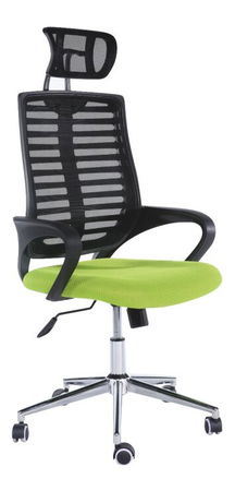 Kancelárska stolička Flore poteší milovníkov nevšedného dizajnu svojim štýlovým prevedením. Stolička má tvarované operadlo s opierkou hlavy a tvarované podrúčky. Podstava stoličky je z kovu a má pogumované kolieska vhodné na plávajúce a drevené podlahy. Výška sedenia sa dá nastavovať pomocou páčky. Farebné prevedenie stoličky je čierna v kombinácii so zelenou.