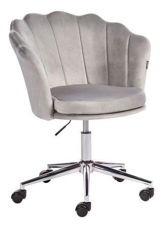 Vďaka tejto funkčnej stoličke bude vaša kancelária alebo pracovňa elegantnejšia a štýlovejšia. Je vybavená 360° otočným mechanizmom a plynovým zdvihákom, ktorý umožňuje praktické nastavenie výšky sedadla. Vďaka chrómovaným kovovým nohám na hviezdicovej základni je stolička stabilná. Stolička je taktiež vybavená ochrannými krytmi na podlahu, ktoré zabránia akémukoľvek poškodeniu povrchu. Tento kúsok je čalúnený mäkkým zamatovým materiálom v modrej farbe a bude dokonalým doplnkom akéhokoľvek interiéru ladeného v modernom, minimalistickom alebo škandinávskom štýle.