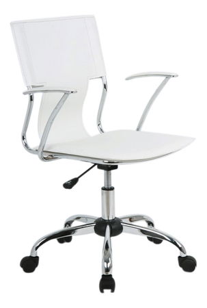 Jednoduchý dizajn tohto kancelárske kresla s označením Q-010 od značky Signal Vás ihneď zaujme, pretože minimalistický dizajn je ústrednou vecou tohto kresla. Dodávané je v bielej farbe a je potiahnuté koženkou. Rám sa blýska vo farbe chrómu.