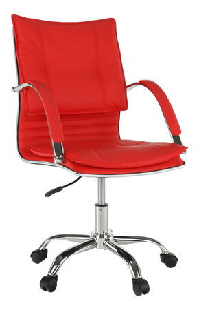Jedným slovom: luxus! Presne také je kancelárske kreslo Quadira. Pohodlie, ktoré vám ponúka, bude pre vás pri každom sedení hotovým zážitkom. Ergonomicky tvarované operadlo zvýrazňuje červená ekokoža, ktorá kreslu dodáva eleganciu. Možnosť nastavenia výšky sedu zabezpečí kompatibilitu s výškou stola a tým získate ešte väčší komfort. Čalúnené opierky na ruky sú oblečené do ekokože, budú rozmaznávať vaše unavené ruky. Chrómovaná podstava zabezpečí, že si svoje kreslo budete dlho užívať.