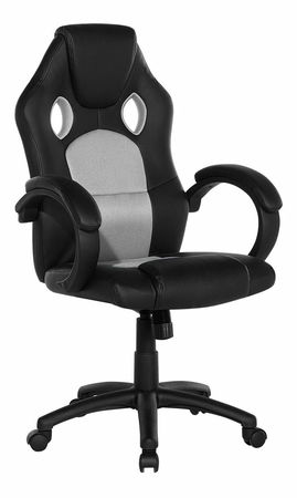 Toto pohodlné kancelárske kreslo je čalúnené vysokokvalitnou čiernou umelou kožou v kombinácii s priedušnou sivou sieťovinou. Výšku sedadla je možné nastaviť pomocou pneumatického plynového zdvihu. Ergonomická opierka hlavy a vystužené opierky rúk podporujú správne a uvoľnené držanie tela. Nastaviteľné operadlo umožňuje individuálne polohovanie, znižuje tlak na chrbticu a zaisťuje ľahký pohyb. Základňa vyrobená z nylonu je otočná o 360° a má 5 hladko sa otáčajúcich koliesok.