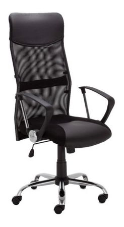 Kancelárska stolička s plastovými područkami a chromovým päťramenným podstavcom. Je dostupná v čiernom farebnom prevedení.