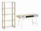 Túto súpravu nábytku do domácej kancelárie si zamilujete. Stôl má na oboch stranách praktické zásuvky, ktoré ponúkajú dostatok priestoru na uloženie písacích potrieb, elektroniky alebo iných užitočných drobností, a policu v strede, ktorá je ideálnym miestom na uloženie klávesnice a myši. Jeho vrchná časť je vyrobená z odolnej MDF dosky, ktorá je pokrytá PVC materiálom, vďaka ktorému je odolná a vydrží dlhodobé používanie. Knižnica je vybavená 4 priestrannými sklenenými policami, na ktoré môžete odložiť nielen dokumenty, ale aj suveníry, fotografie a iné dekoratívne predmety. Univerzálna farebná kombinácia bielej a svetlého dreva dodáva nábytku minimalistický nádych a škandinávsky dizajn sa skvele hodí k rôznym štýlom interiéru.