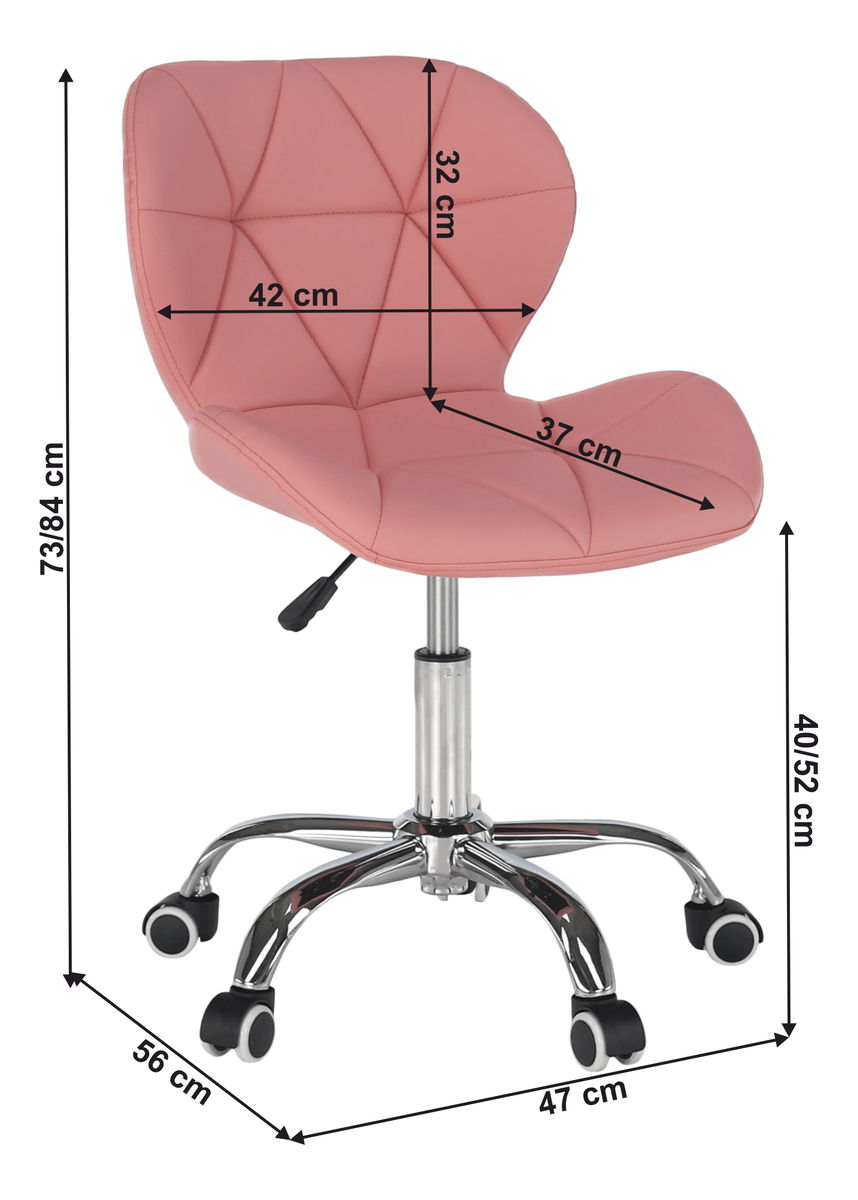 Kancelárske kreslo Asher (ružová + chróm) je ideálnou voľbou pre zlepšenie vašej pracovnej pohody. S výškou 73 cm, šírkou 47 cm a hĺbkou 56 cm poskytuje dostatok priestoru a pohodlia pre dlhé hodiny sedenia. Toto kreslo je nielen štýlové, ale aj praktické. Prešívaná sivá ekokoža je nielen pekná na pohľad, ale aj jednoduchá na údržbu. Mechanizmus na nastavenie výšky sedu je ľahko prístupný a umožňuje vám prispôsobiť si kreslo presne podľa vašich potrieb. Kreslo Asher je skvelým doplnkom pre vašu kanceláriu alebo pracovňu a prinesie do vášho interiéru štýlový dotyk. Nezaháľajte a doprajte mu príležitosť vyniknúť.