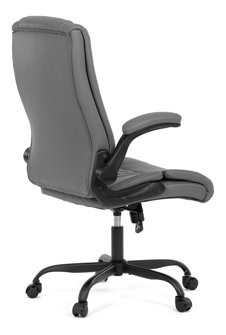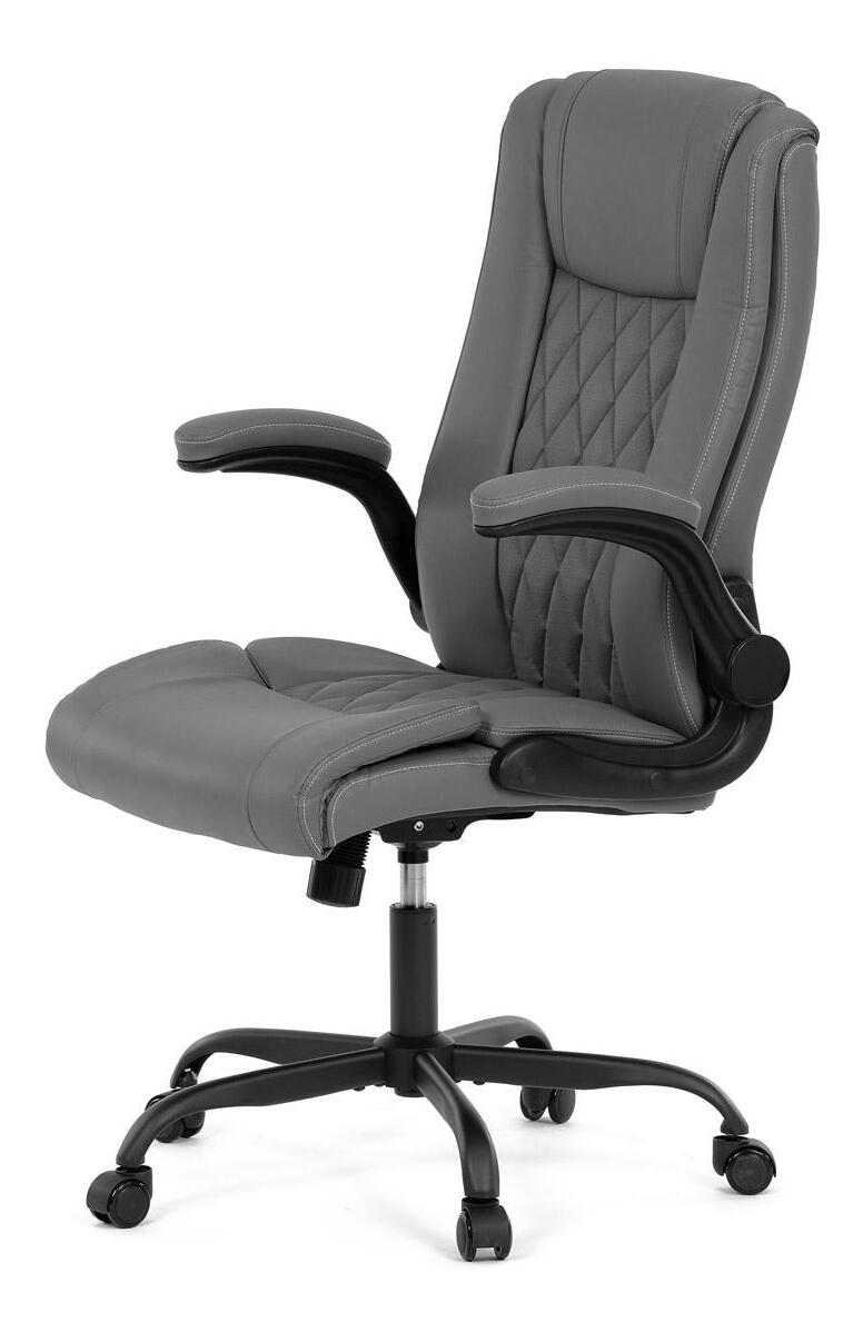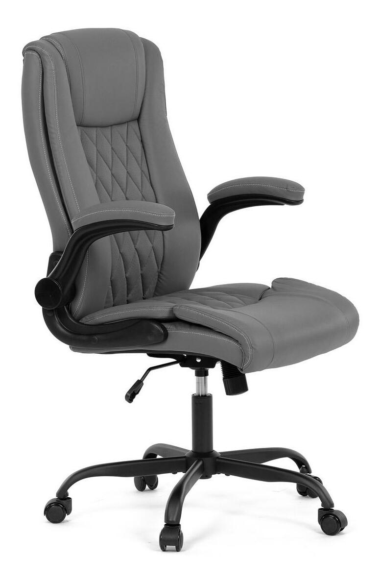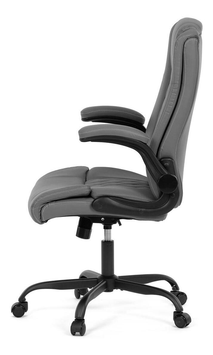 Vylepšite svoj priestor stoličiek, ktorá je vzorom pohodlia a štýlu a dokonale sa hodí k akémukoľvek pracovnému stolu alebo jedálni. Jej hladký povrch, vyrobený z prvotriednej šedej ekokože, sľubuje luxusný dotyk na koži a umocňuje každodenný zážitok zo sedenia. Jeho industriálny dizajn, ktorý sa vyznačuje minimalistickou, ale odvážnou estetikou, z neho robí univerzálny kúsok pre pracovné prostredie aj súkromné domácnosti. Funkčnosť sa snúbi s formou, pretože stolička sa pýši výklopnými podrúčkami, ktoré umožňujú jednoduché prispôsobenie vlastným preferenciám sedenia. Tieto čalúnené podrúčky poskytujú pohodlie aj oporu a spríjemňujú dlhé sedenie. Ozdobné prešitie operadla dodáva tejto stoličke jemný, ale sofistikovaný vkus a odlišuje ju od jej súčasníkov. Stolička je ideálna pre tých, ktorí si cenia ako dizajn, tak praktickosť, a nerobia kompromisy v kvalite. Aj keď jej chýba bedrová opierka a opierka hlavy, jej dizajn je zameraný na poskytnutie jedinečného zážitku zo sedenia vďaka ergonomickým prvkom a štýlovému vzhľadu. Táto stolička predstavuje vrchol inovatívnych riešení nábytku, ktoré uspokoja náročný vkus profesionálov i milovníkov estetiky.