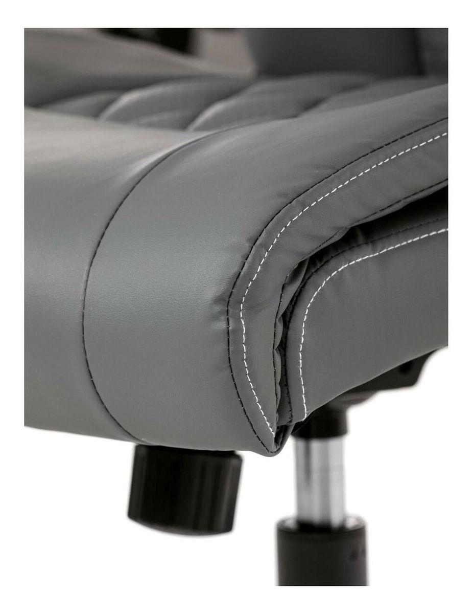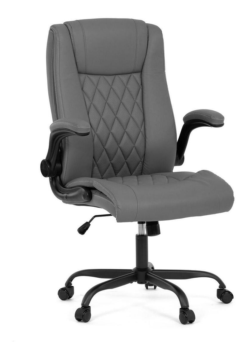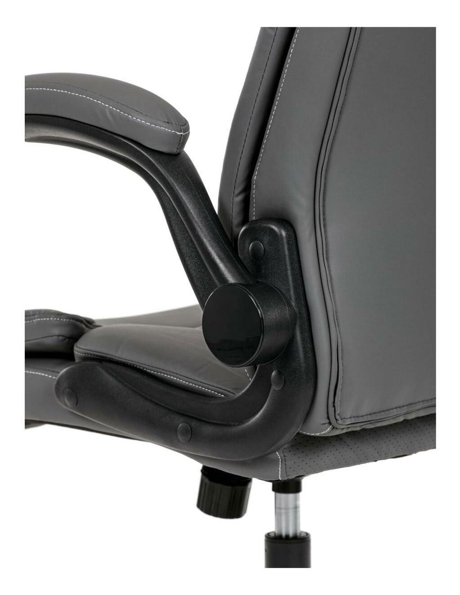 Vylepšite svoj priestor stoličiek, ktorá je vzorom pohodlia a štýlu a dokonale sa hodí k akémukoľvek pracovnému stolu alebo jedálni. Jej hladký povrch, vyrobený z prvotriednej šedej ekokože, sľubuje luxusný dotyk na koži a umocňuje každodenný zážitok zo sedenia. Jeho industriálny dizajn, ktorý sa vyznačuje minimalistickou, ale odvážnou estetikou, z neho robí univerzálny kúsok pre pracovné prostredie aj súkromné domácnosti. Funkčnosť sa snúbi s formou, pretože stolička sa pýši výklopnými podrúčkami, ktoré umožňujú jednoduché prispôsobenie vlastným preferenciám sedenia. Tieto čalúnené podrúčky poskytujú pohodlie aj oporu a spríjemňujú dlhé sedenie. Ozdobné prešitie operadla dodáva tejto stoličke jemný, ale sofistikovaný vkus a odlišuje ju od jej súčasníkov. Stolička je ideálna pre tých, ktorí si cenia ako dizajn, tak praktickosť, a nerobia kompromisy v kvalite. Aj keď jej chýba bedrová opierka a opierka hlavy, jej dizajn je zameraný na poskytnutie jedinečného zážitku zo sedenia vďaka ergonomickým prvkom a štýlovému vzhľadu. Táto stolička predstavuje vrchol inovatívnych riešení nábytku, ktoré uspokoja náročný vkus profesionálov i milovníkov estetiky.