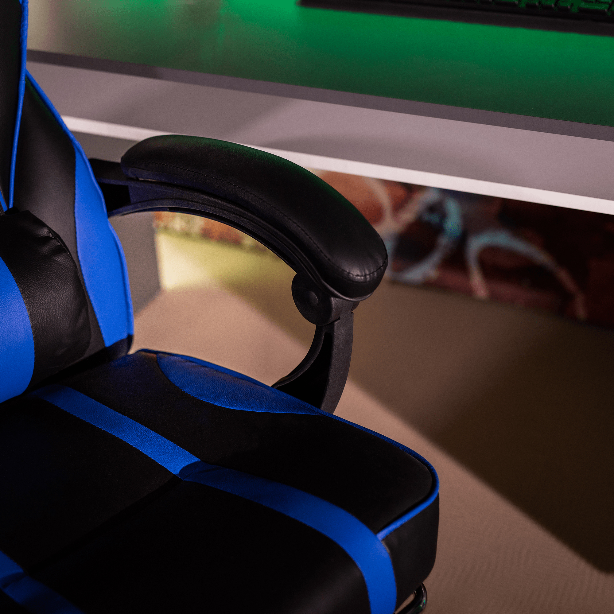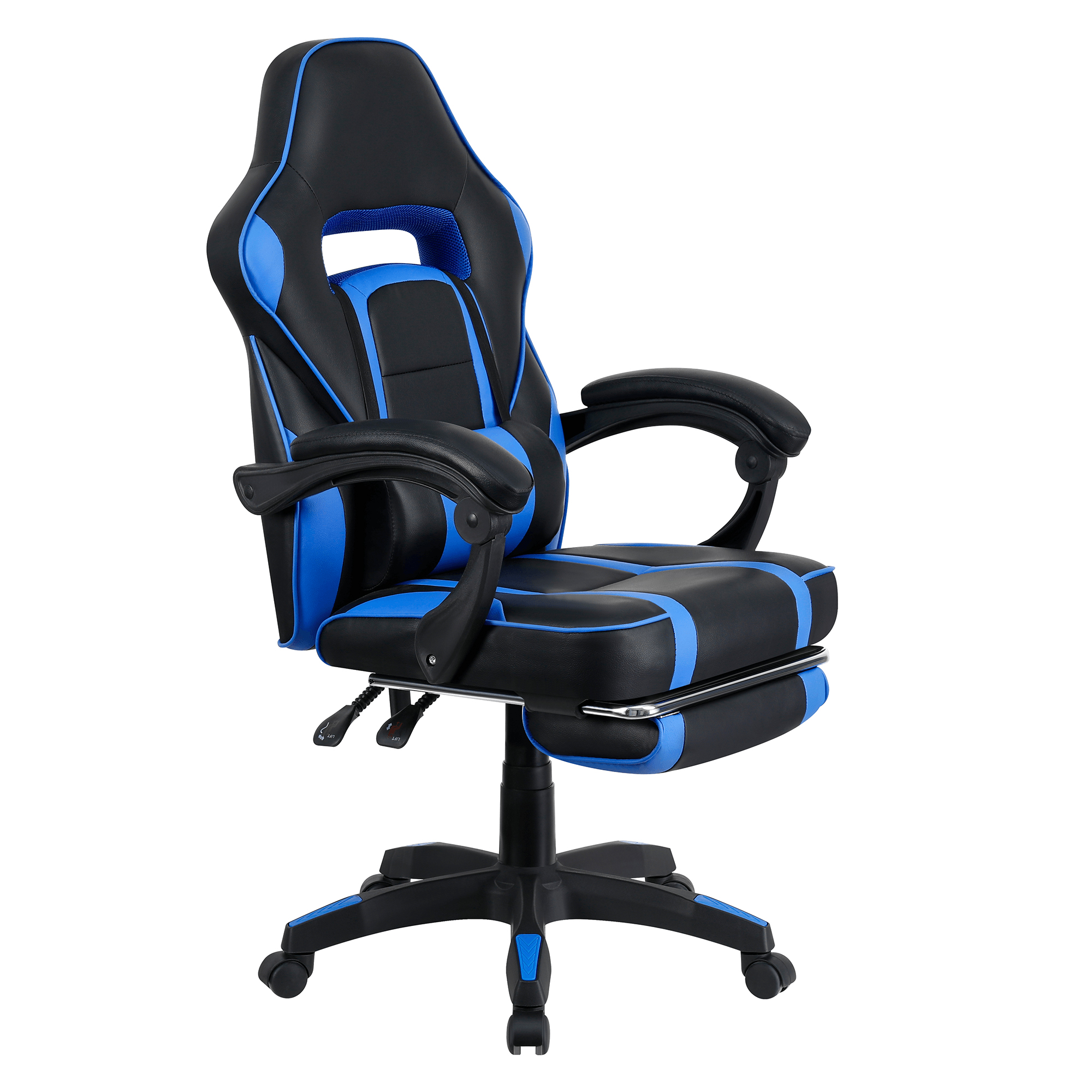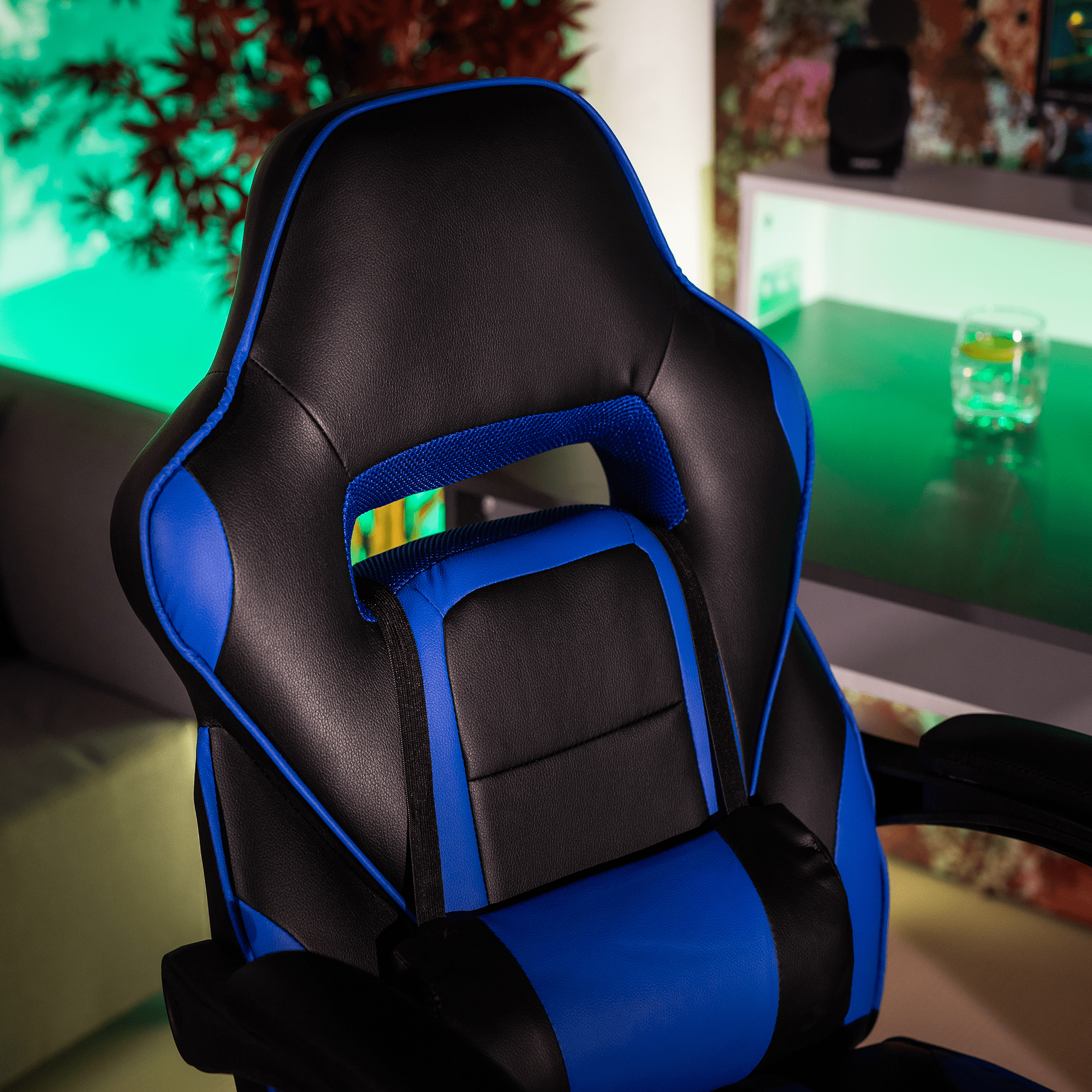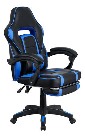 Herné kancelárske kreslo Gazania modrej farby je vybavené ergonomickým operadlom, predĺženým operadlom, nastaviteľnou bedrovou výškou, tvarovaným sedadlom a čalúnenými plastovými podrúčkami. Kreslo stojí na päťramennej plastovej základni. Materiál kresla je ekokoža, drevo a plast. Rám kresla je vyrobený z dreva a opierka je z plastu. Šírka sedu je 52 cm a hĺbka sedu je 45-55 cm. Výška chrbtovej opierky je 59 cm a šírka chrbtovej opierky je 53 cm. Kreslo má maximálnu nosnosť 110 kg a otočnú osu 360°. Operadlo je možné nastaviť v sklon 90°-135°. Kreslo sa dodáva v demonte.