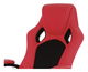 Elegantné kancelárske kreslo vyrobené z koženky červenej farby v kombinácií s látkou typu mesh v čiernej farbe. Kríž a podrúčky sú vo vysokom bielom lesku, hojdací mechanizmus, plynový piest.