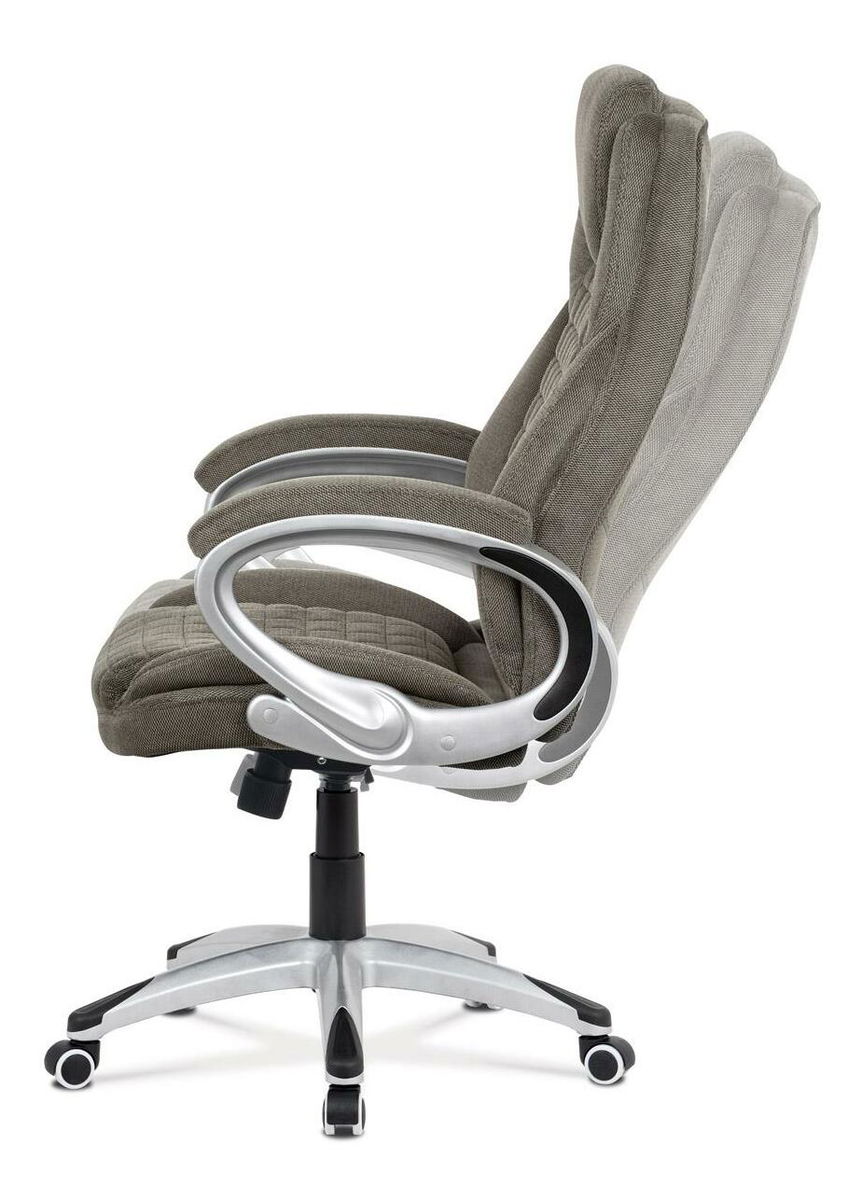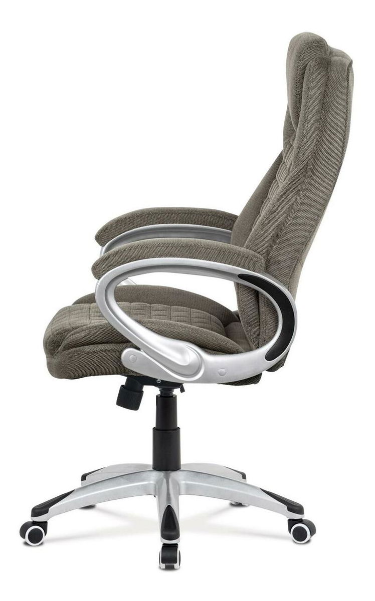 Moderná kancelárska stolička potiahnutá pololesklou šedou látkou vzor pepito. Vďaka ultra pohodlnému sedáku a operadlu s výnimočným polstrovaním, ktoré sú štýlovo tvarované, s elegantným prešitím a so super mäkkým podhlavníkom sa budete cítiť ako v business class najlepšej leteckej spoločnosti. Ruky si môžete pohodlne oprieť o pevné plastové podrúčky šedej farby s čiernymi plastovými doplnkami a polstrovaním potiahnutým extra jemnou látkou. Stolička má tiež aj ľahko umývateľný, tvrdený, plastový kríž striebornej farby s čiernymi protišmykovými prvkami a plastovými kolieskami vhodnými na tvrdé typy podláh (dlažba, parkety, plávajúce podlahy a pod.). Je výškovo nastaviteľná, s hojdacím mechanizmom a prednou skrutkou upravujúcou tuhosť pohupu a jej nosnosť je až 120 kg. Látku čistiť výhradne šampónovaním bežnými čistiacimi prostriedkami za použitia mäkkého materiálu (hubka, handrička). Nečistiť hrubými materiálmi (kefa, apod.). Nikdy nepoužívať chemické rozpúšťadlá. Látku nevystavujte priamemu slnečnému žiareniu. Všetky nečistoty treba odstraňovať ihneď po zašpinení. Neskorom čistením sa úspešnosť zákroku výrazne znižuje. Látku nevystavujte priamemu slnečnému žiareniu.