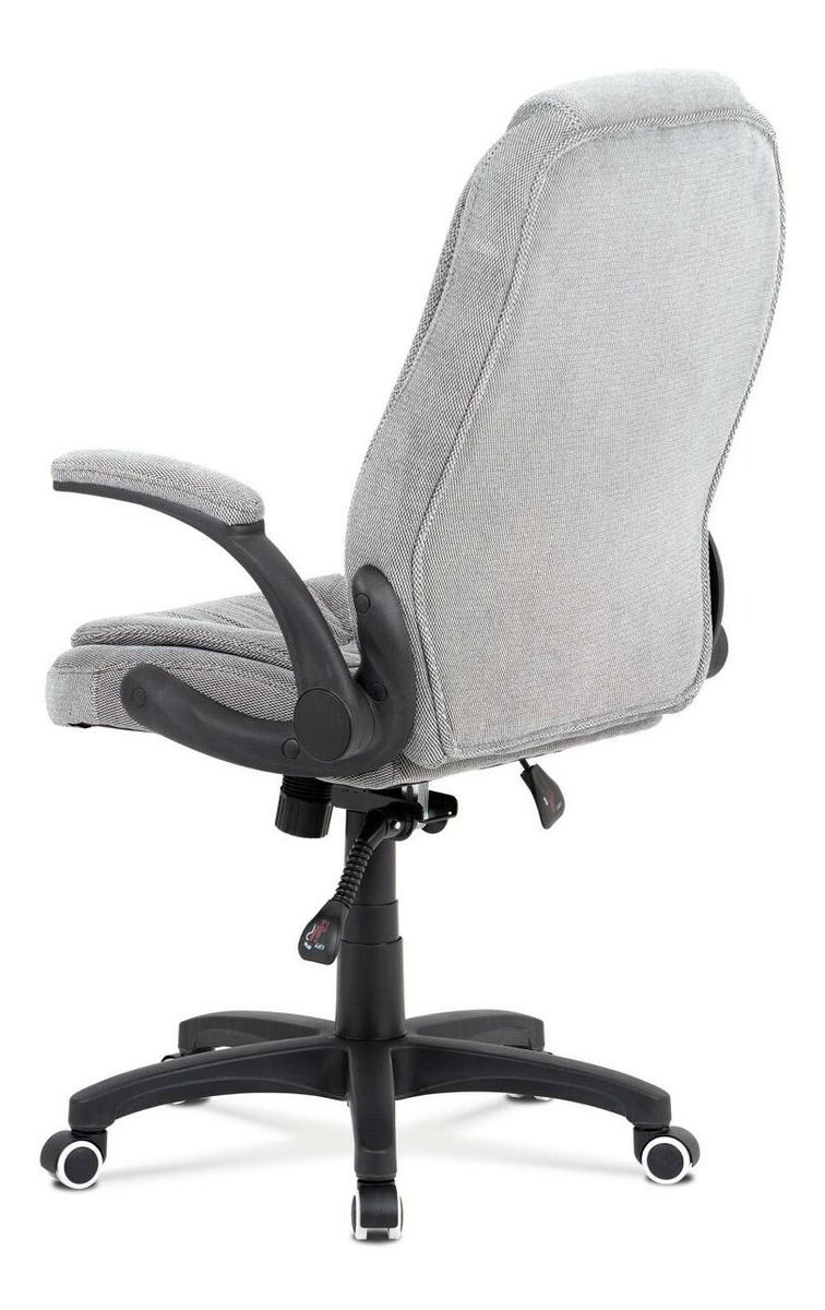 Moderná kancelárska stolička potiahnutá pololesklou šedostriebornou látkou vzor pepito. Vďaka ultra pohodlnému sedáku a operadlu s výnimočným polstrovaním, ktoré sú štýlovo tvarované, s elegantným prešitím a so super mäkkým podhlavníkom sa budete cítiť ako v business class najlepšej leteckej spoločnosti. Ruky si môžete pohodlne oprieť o odklápacie plastové podrúčky striebornej farby s polstrovaním potiahnutým extra jemnou látkou. Stolička má tiež aj ľahko umývateľný, tvrdený, plastový kríž striebornej farby s čiernymi protišmykovými prvkami a plastovými kolieskami vhodnými na tvrdé typy podláh (dlažba, parkety, plávajúce podlahy a pod.). Stolička je výškovo nastaviteľná, so synchrónnym mechanizmom a prednou skrutkou upravujúcou tuhosť pohupu a jej nosnosť je až 120 kg. Látku čistiť výhradne šampónovaním bežnými čistiacimi prostriedkami za použitia mäkkého materiálu (hubka, handrička). Nečistiť hrubými materiálmi (kefa, apod.). Nikdy nepoužívať chemické rozpúšťadlá. Látku nevystavujte priamemu slnečnému žiareniu. Všetky nečistoty treba odstraňovať ihneď po zašpinení. Neskorom čistením sa úspešnosť zákroku výrazne znižuje. Látku nevystavujte priamemu slnečnému žiareniu.