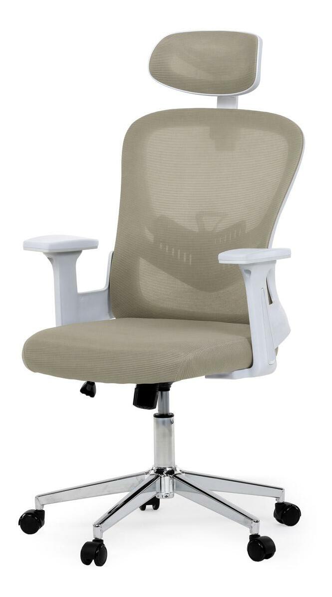 ZobraziťModerná kancelárska stolička v elegantnej béžovej farbe kombinuje komfort a funkčnosť pre každodennú prácu. Sedák aj operadlo sú potiahnuté priedušnou sieťovinou, ktorá zaisťuje optimálnu cirkuláciu vzduchu a pohodlie aj pri dlhšom sedení. Nastaviteľné 2D podrúčky umožňujú individuálne prispôsobenie podľa potreby. Stabilitu a pevnosť zaisťuje chrómový kríž s kolieskami vhodnými na tvrdé podlahy, ktoré umožňujú plynulý pohyb. Štýlová a praktická voľba pre kancelárie aj domáce pracovne.