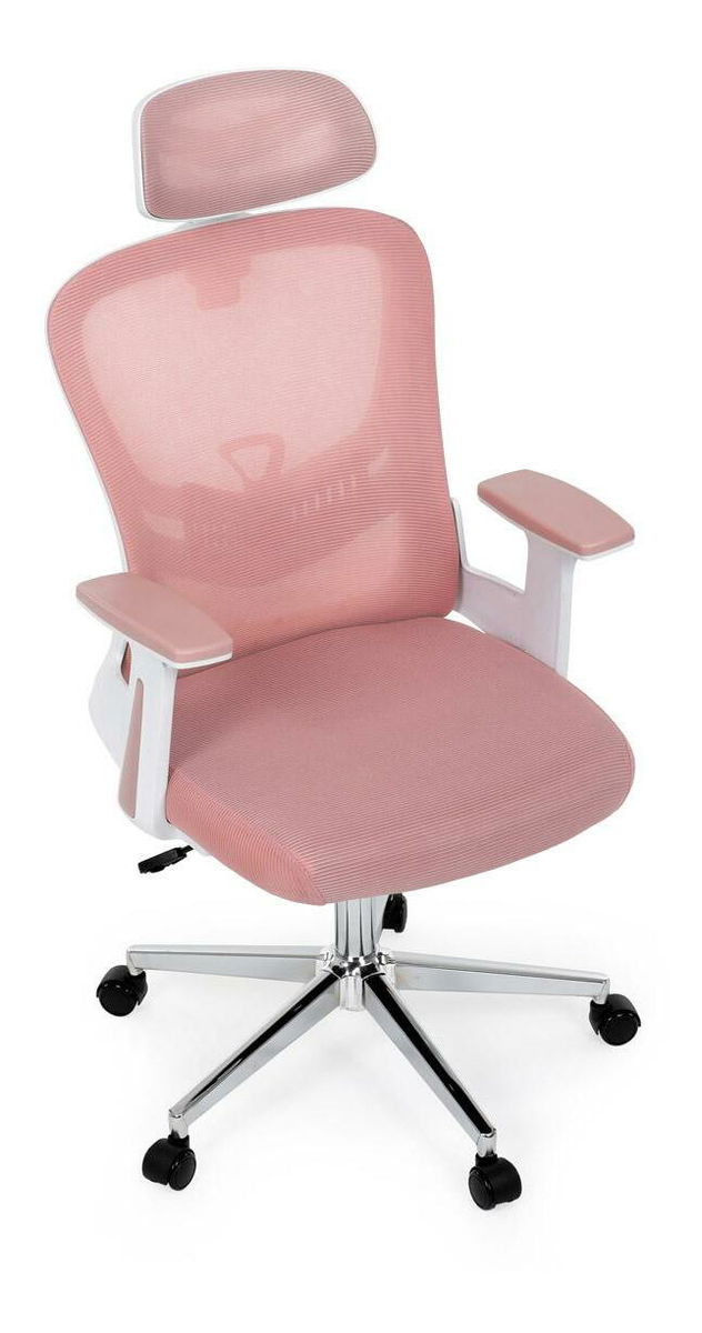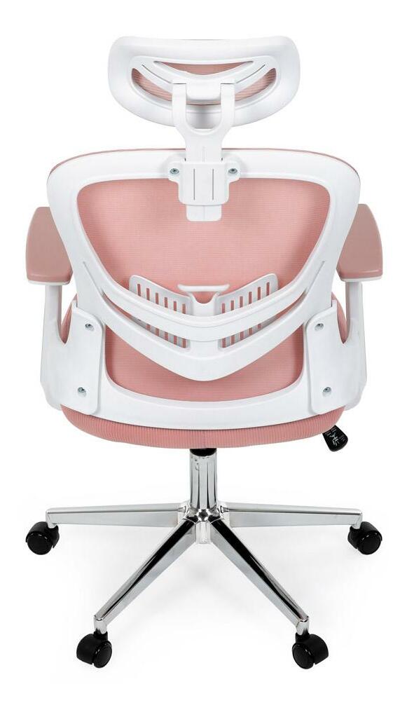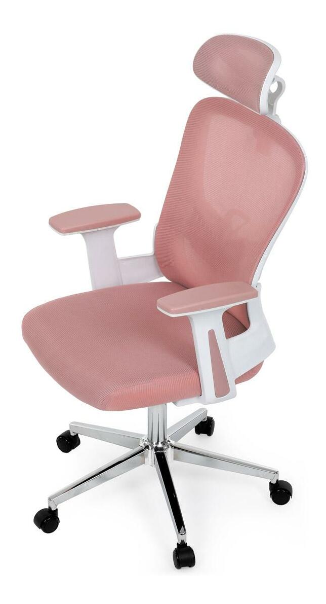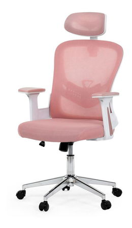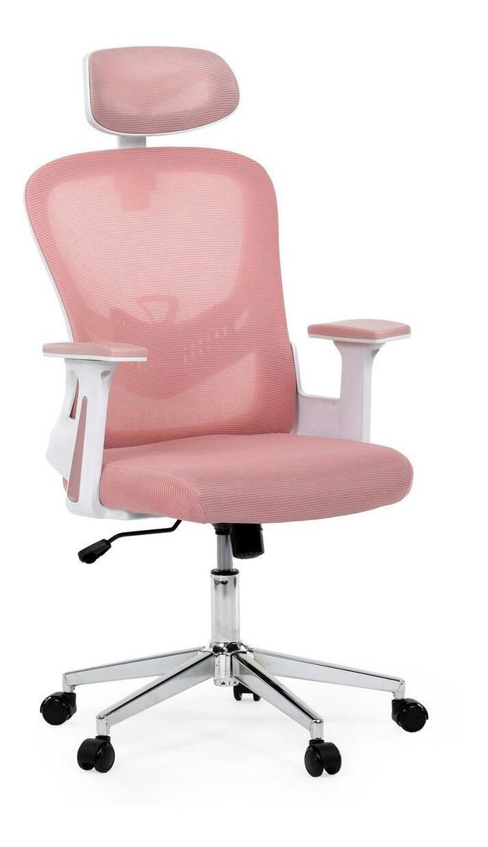 Elegantná a moderná kancelárska stolička zaujme svojim jedinečným dizajnom a praktickými funkciami. Ružová sieťovina poťahové látky nielen pridáva na estetickej hodnote, ale taktiež zaisťuje optimálnu priedušnosť počas dlhého sedenia. Výškovo nastaviteľná bedrová opierka a opierka hlavy ponúkajú individuálny komfort, ktorý podporuje správne držanie tela. Komfortné sedenie bez čalúnených podrúčiek uľahčuje pohyb a prístup k pracovnej ploche. Skvelá voľba pre každý moderne zariadený interiér, táto stolička kombinuje funkčnosť s atraktívnym vzhľadom.