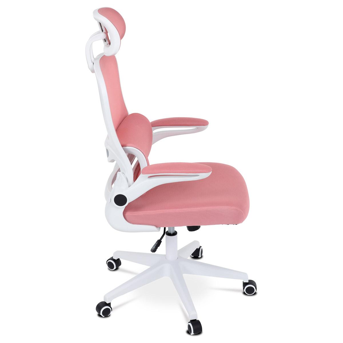 ZobraziťKancelárska stolička v ružovej farbe je ideálnou voľbou pre Vašu kanceláriu. Ponúka výškovo nastaviteľnú opierku hlavy a odklápacie podrúčky pre maximálne pohodlie. Sedák je vyrobený z priedušnej sieťoviny a PU peny. Chrbtová opierka je v rovnakom poťahovom materiáli. To všetko zaisťuje komfort aj pri dlhodobom sedení. Biely plastový kríž dodáva stoličke moderný vzhľad a eleganciu.