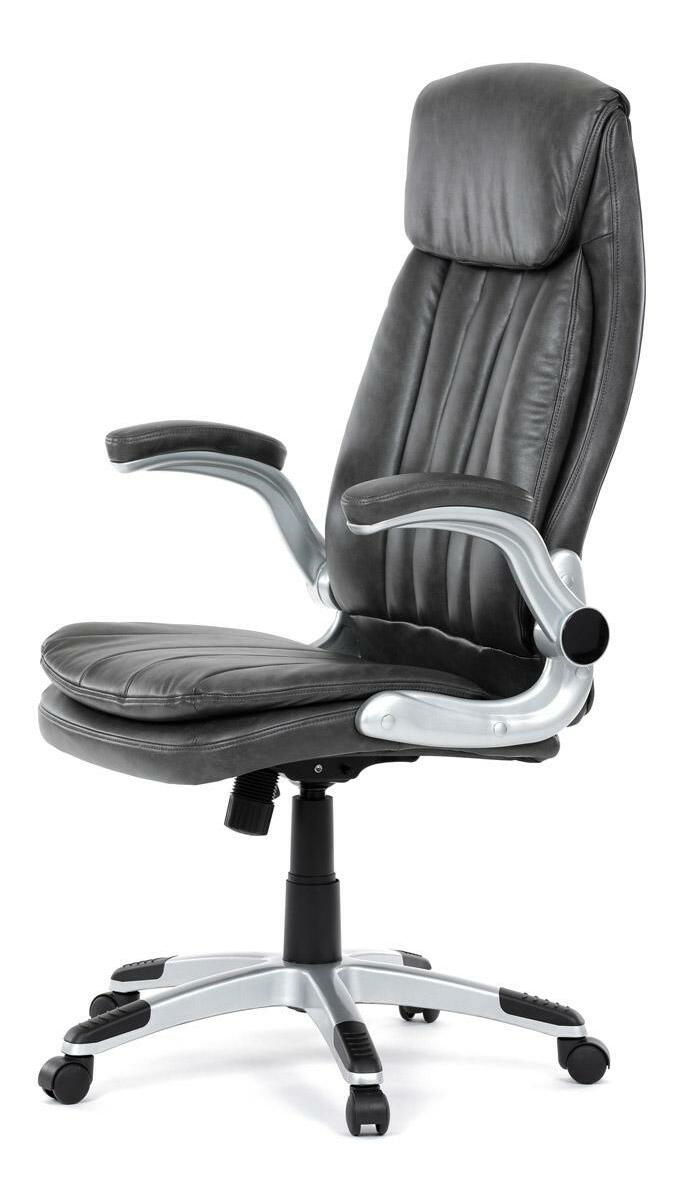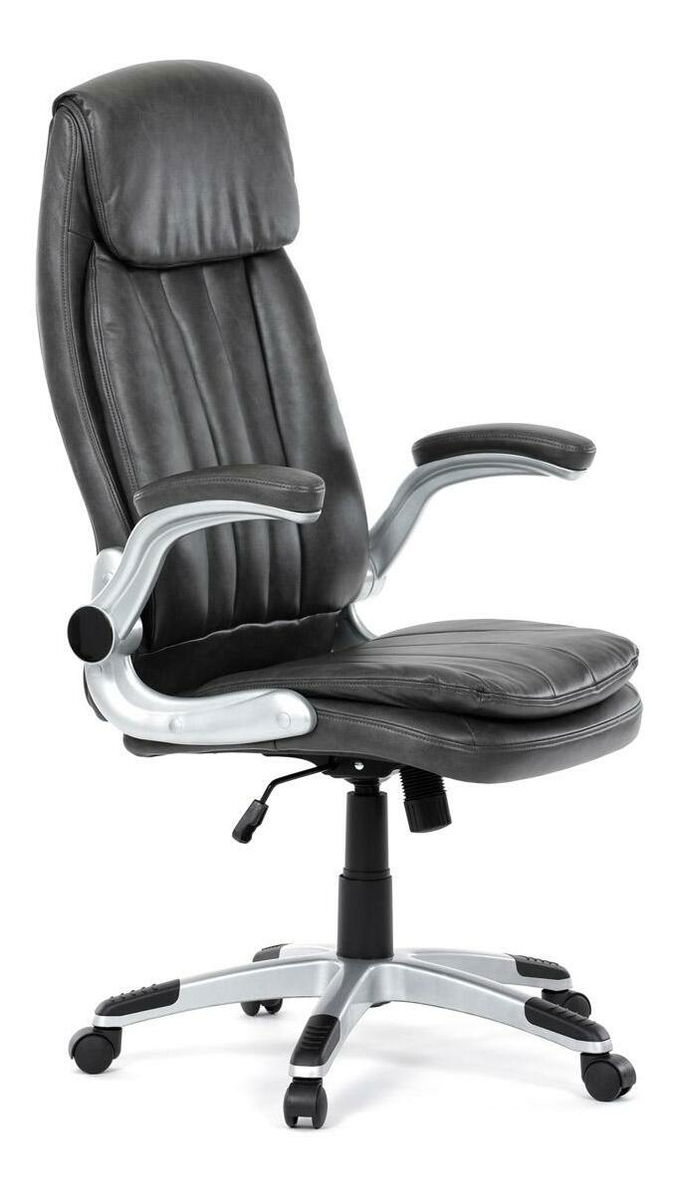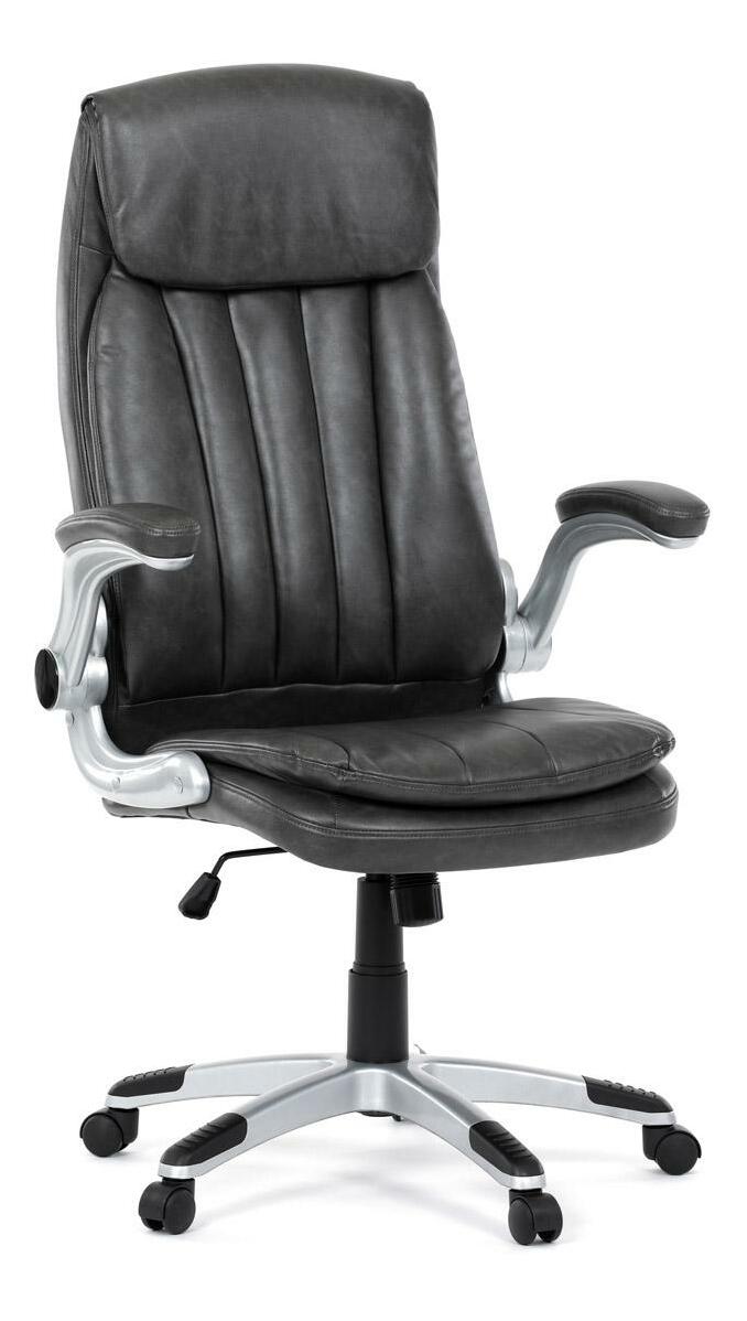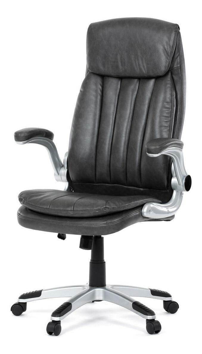 Elegantné kancelárske kreslo zaujme svojim moderným designom a pohodlným prevedením. Poťah z hladkej ekokože dodáva stoličke luxusný vzhľad, zatiaľ čo mäkká PU pena zaisťuje komfort aj pri dlhom sedení. Nastaviteľná výška a ergonomicky tvarovaný sedák prispievajú k optimálnej podpore pri práci. Stabilný kríž v striebornom prevedení je osadený kolieskami vhodnými na všetky druhy podláh.