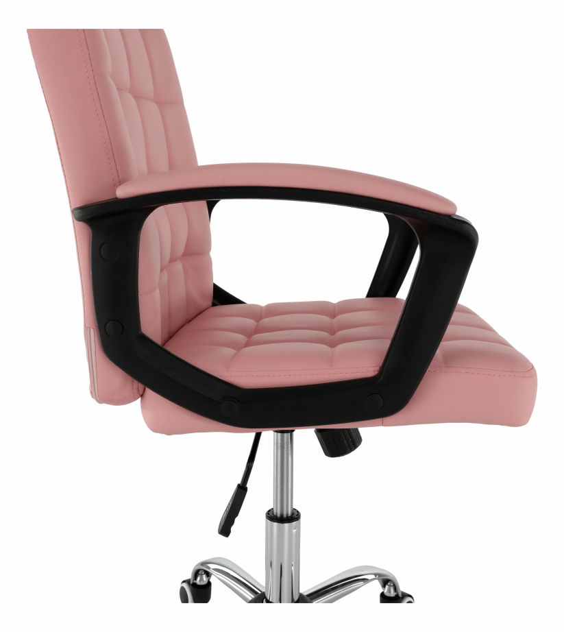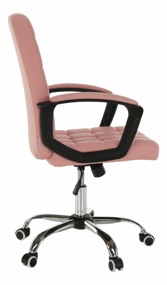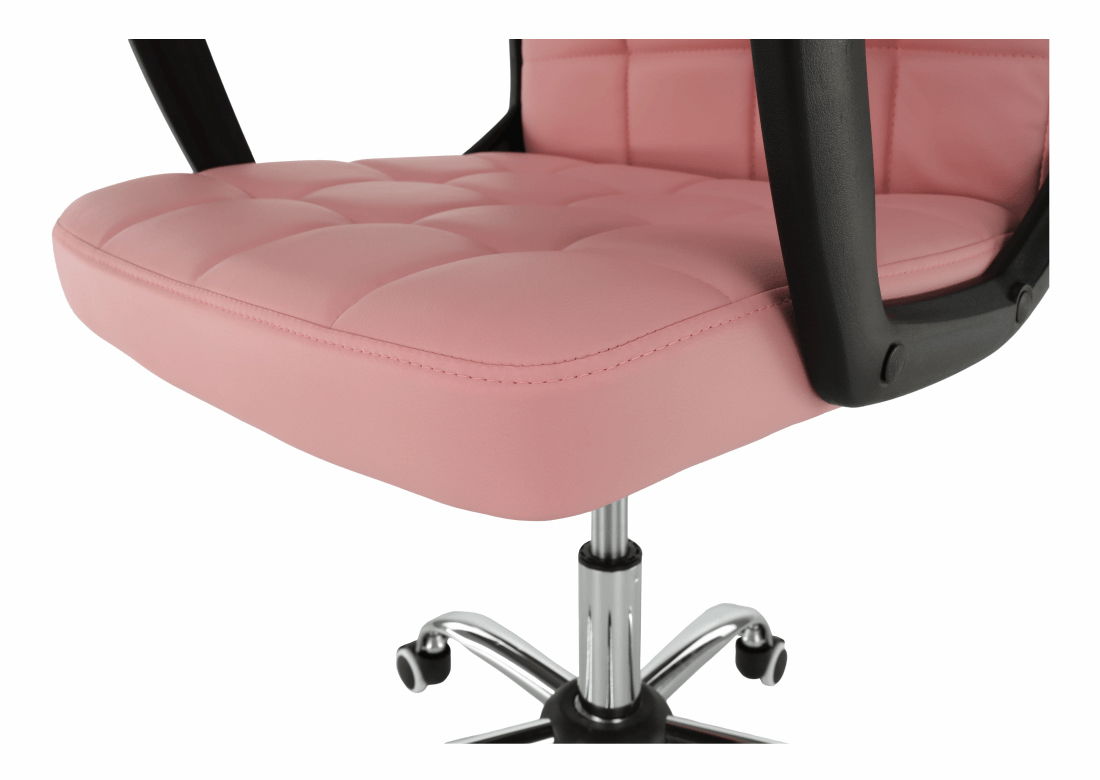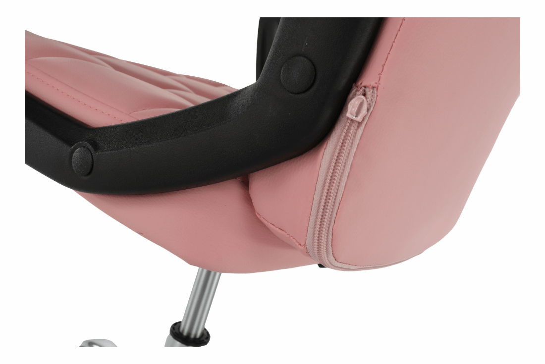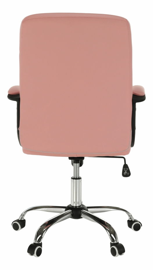 Kancelárske kreslo Rulana v ružovej farbe s materiálom čalúnenia z ekokože a konštrukciou z plastu a kovu ponúka nastaviteľnú výšku sedu od 44 do 54 cm a maximálnu nosnosť 110 kg. Výrobok obsahuje hojdací mechanizmus, dekoratívne šitie, čalúnené opierky na ruky a pogumované kolieska, ktoré umožňujú použitie na drevených aj plávajúcich podlahách. Kancelárske kreslo Rulana je dodávané v demonte a má rozmery 60x61x96-106 cm.