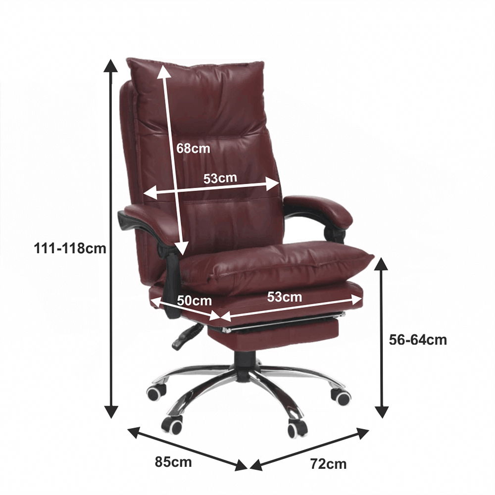 Kancelárske kreslo s podnožkou Drann je ideálnym doplnkom pre vašu pracovňu. Jeho moderný a elegantný dizajn v bordovej farbe prinesie do vašej pracovnej miestnosti štýlový vzhľad. Kreslo je vyrobené z kvalitných materiálov, ktoré zaručujú jeho pevnosť a odolnosť. Výška kresla je 111 cm a hĺbka 85 cm, čo zabezpečí pohodlné sedenie počas celého pracovného dňa. Podnožka kresla je vybavená kolieskami, čo umožňuje ľahké pohybovanie po pracovnej miestnosti. Kancelárske kreslo s podnožkou Drann je ideálnym riešením pre každého, kto hľadá kvalitné a pohodlné kreslo pre svoju pracovňu.