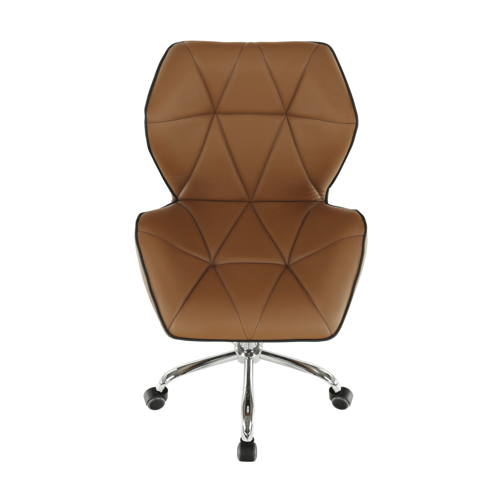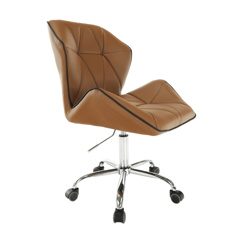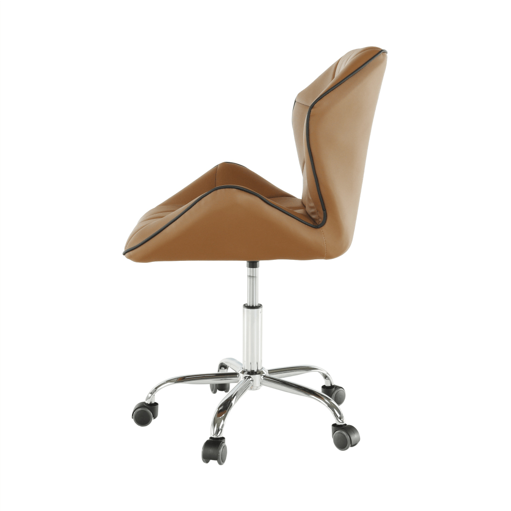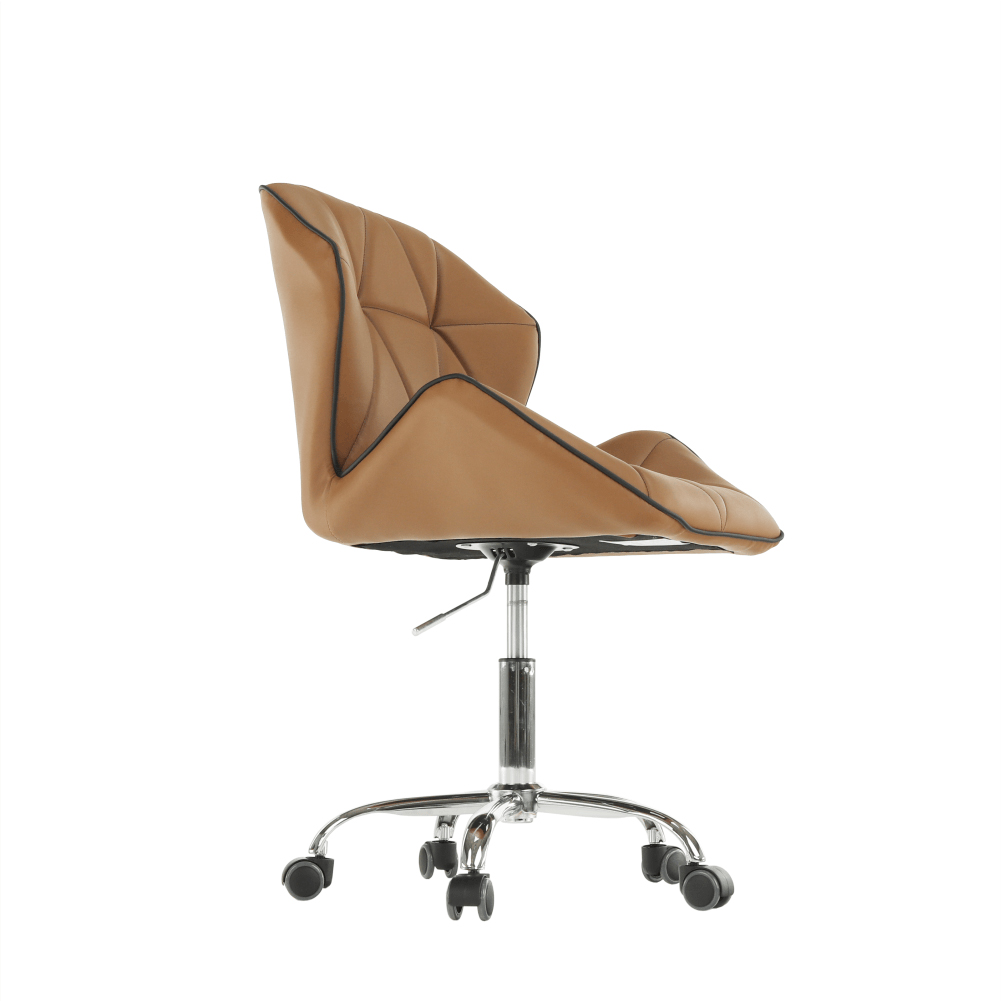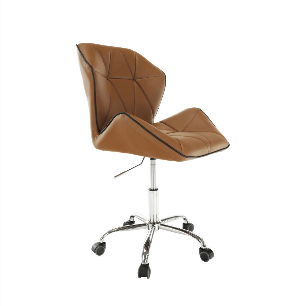 Čo potrebujete na prácu v kancelárii, domácej pracovni alebo študentskej izbe? Pracovný stôl, regál na dokumenty, a hlavne pohodlné a kvalitné kancelárske kreslo. Presne také, aké hľadáte, je kancelárske kreslo Thelar. Thelar, to nie je iba také obyčajné kreslo. Prichádza v modernom futuristickom dizajne. Vyrobené z hnedej-camel ekokože, spodná ružica je z kovu. Nastavte si výšku sedu, aká vám vyhovuje, a práca pôjde od ruky. Sedadlo aj operadlo je ergonomicky tvarované, prešívané, opierky ruky sú v netradičnom tvare. Je vhodné na plávajúce a drevené podlahy vďaka pogumovaným kolieskam. Kancelárske kreslo snov pre dokonalé sústredenie.