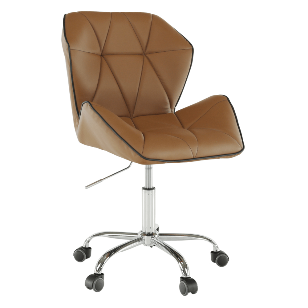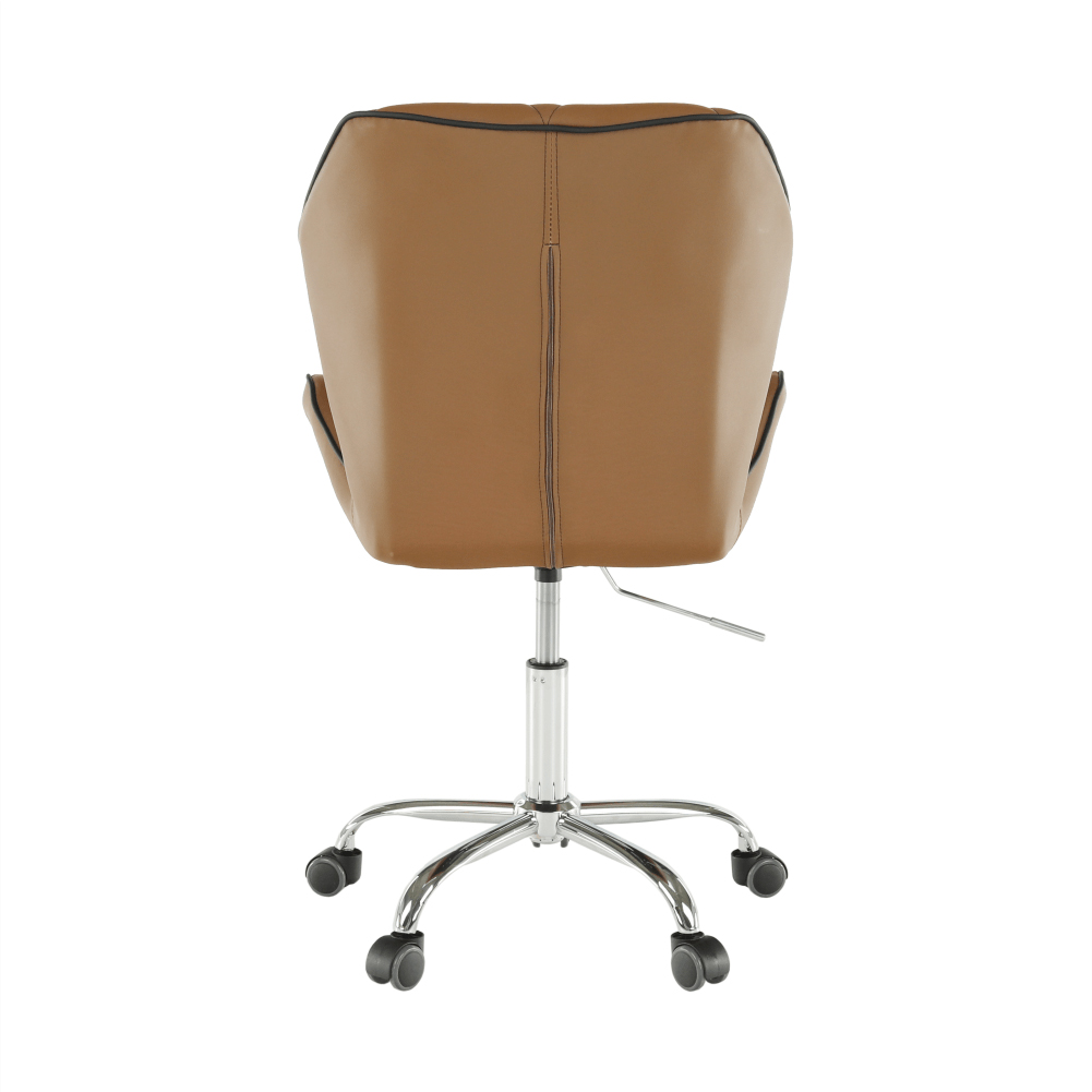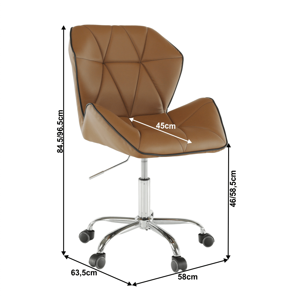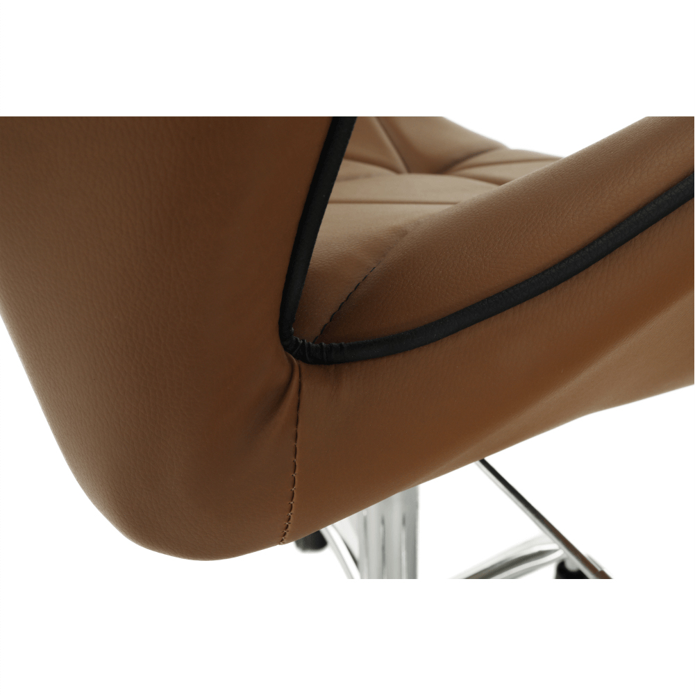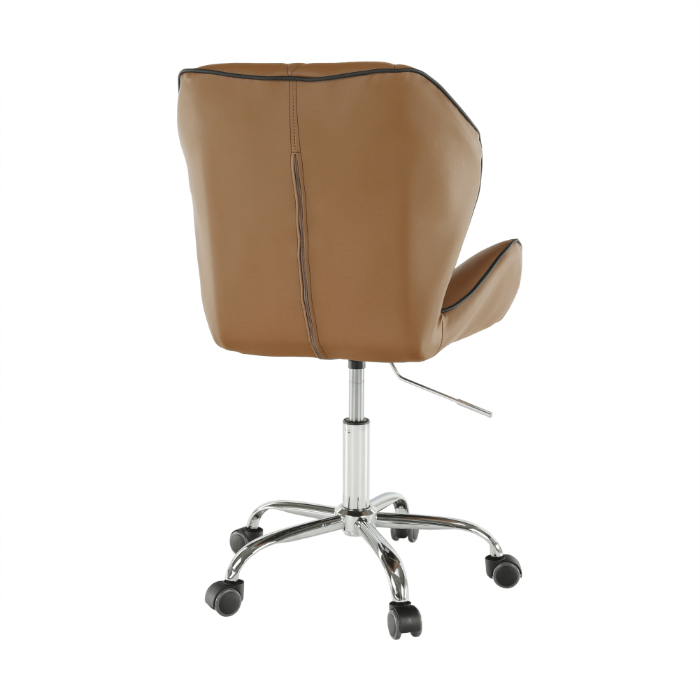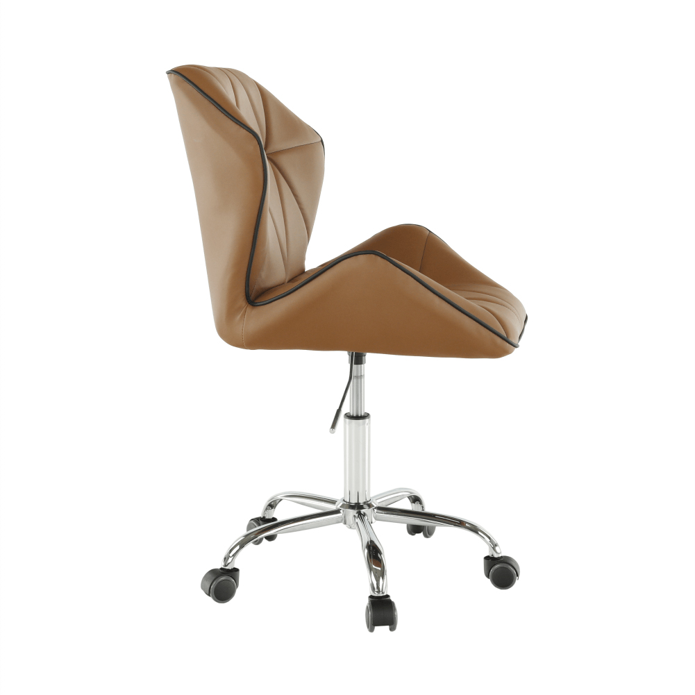 Čo potrebujete na prácu v kancelárii, domácej pracovni alebo študentskej izbe? Pracovný stôl, regál na dokumenty, a hlavne pohodlné a kvalitné kancelárske kreslo. Presne také, aké hľadáte, je kancelárske kreslo Thelar. Thelar, to nie je iba také obyčajné kreslo. Prichádza v modernom futuristickom dizajne. Vyrobené z hnedej-camel ekokože, spodná ružica je z kovu. Nastavte si výšku sedu, aká vám vyhovuje, a práca pôjde od ruky. Sedadlo aj operadlo je ergonomicky tvarované, prešívané, opierky ruky sú v netradičnom tvare. Je vhodné na plávajúce a drevené podlahy vďaka pogumovaným kolieskam. Kancelárske kreslo snov pre dokonalé sústredenie.