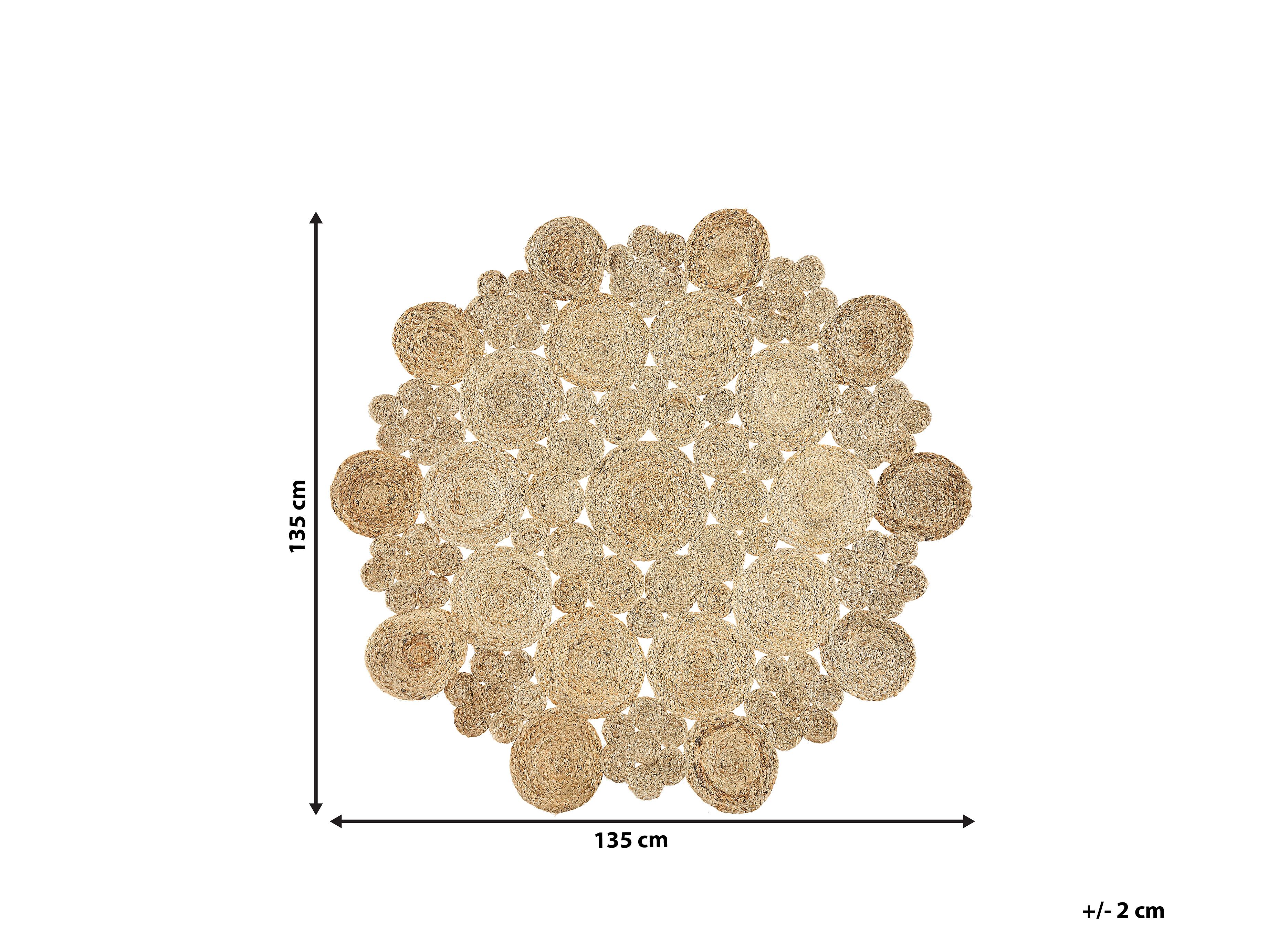 Doplňte svoj interiér týmto obojstranným kobercom v boho štýle, ktorý je vyrobený z prírodných materiálov. Má štýlový okrúhly tvar, krásnu väzbu a kvetovaný vzor a zútulní akýkoľvek priestor. Juta je mimoriadne nenáročná na starostlivosť a je ekologická. Navyše je vhodná pre ľudí trpiacich alergiami. Neváhajte a skrášlite si domov týmto očarujúcim kobercom.