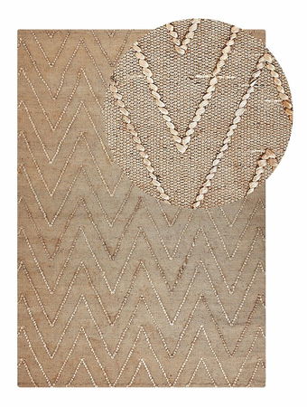 Tento nádherný a jedinečný koberec vnesie prírodný charakter do každej miestnosti. Je precízne spracovaný a ručne vyrobený z juty a bavlny. Vďaka vyšívanému geometrickému vzoru a neutrálnej béžovej farbe je ideálnym doplnkom do interiérov zariadených v boho štýle.